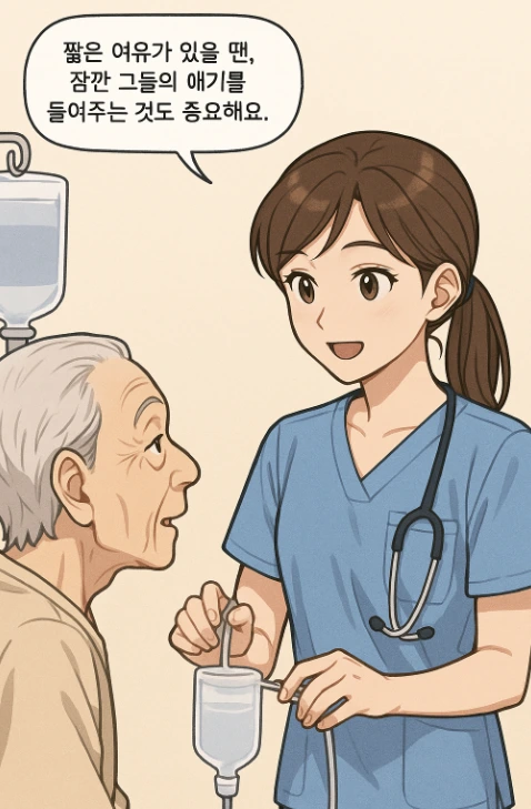 그게 “처음 보는 간호사”에 대한 경계를 조금이나마 낮춰줍니다.