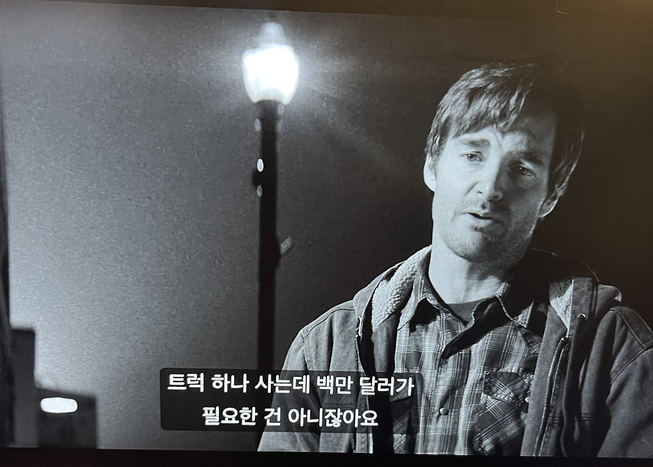 드디어 링컨에 도착한다. 그리고 당연히 복권은 가짜였다. 복권만이 삶의 남은 희망인 듯이 구는 아버지를 향해, 데이비드는 드디어 진짜 대화를 건넨다. “백만 달러가 왜 필요하신 거예요, 갖고 싶다는 트럭 하나 사는데 백만 달러가 필요한 건 아니잖아요 “. 그리고 아버지는 그제서야 진짜 대답을 한다. “너희한테 뭔가 남겨 주고 싶었어”. 이 순간이다. 평생 동안 대화를 해보지 못한 부자는, 1,500km를 달려와서야 이 한마디를 할 수 있었다. 오래도 걸렸다. 그랜트 가의 남자들은 말수가 참 적다.