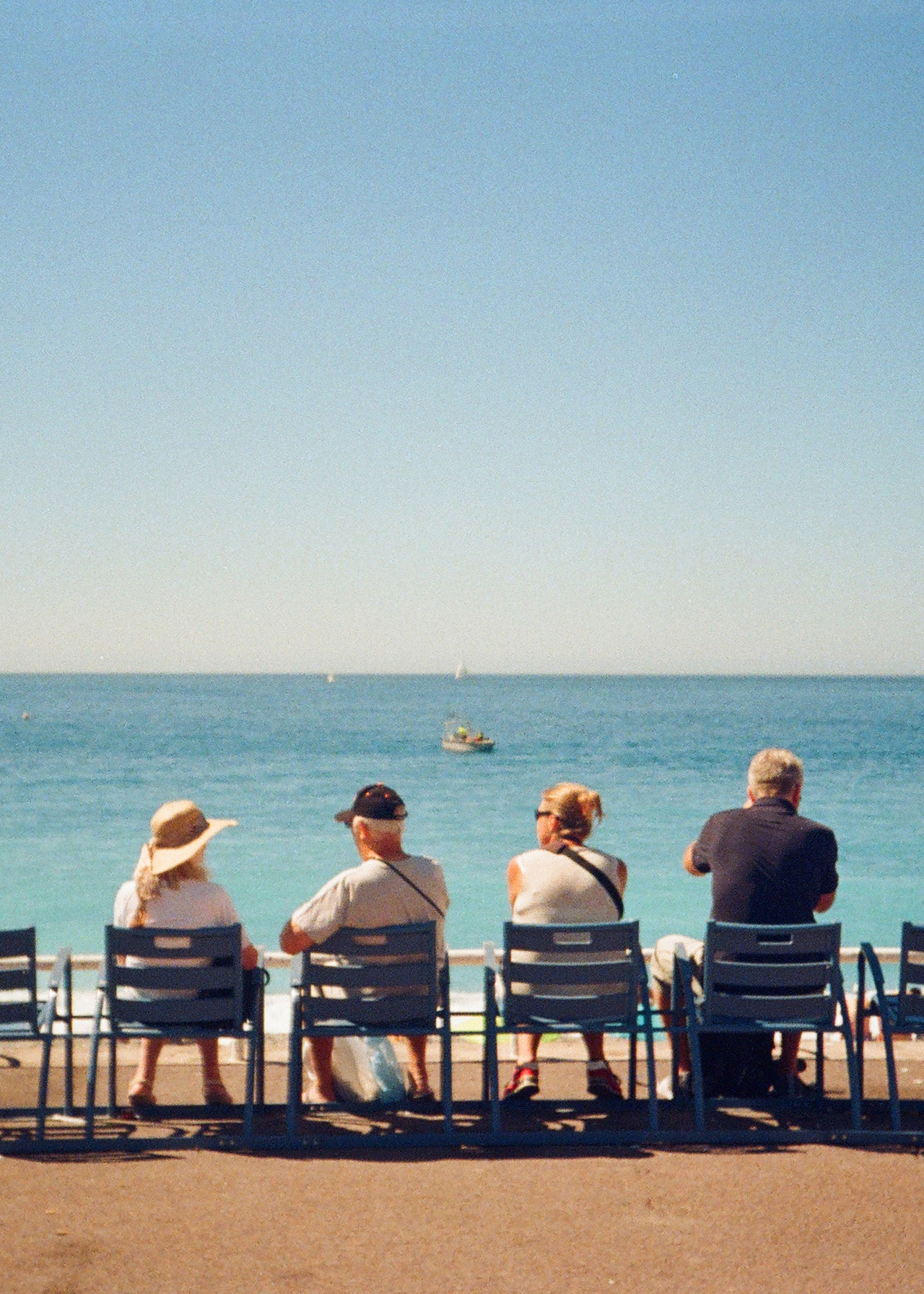 니스에 3박 4일 동안 있으면서 제일 많이 찍었던 것은 단연 해변 사진이었다. 그중에서도 니스의 시그니처 의자인 '파란 의자'에 앉아 바다를 감상하는 사람들을 담기 바빴다. '모두 무슨 생각을 하면서 바다를 바라보고 있을까?' 궁금했다. 그리고 언젠가 나도 저들처럼 나이를 훨씬 더 먹은 후에 다시 니스를 찾고 싶어 졌다. 그때 바라보는 니스의 바다는 스물두 살의 내가 봤던 니스랑 어떤 차이가 있을까.