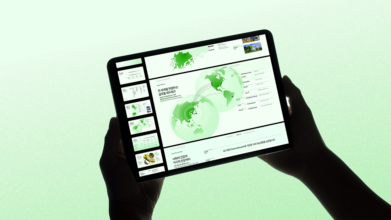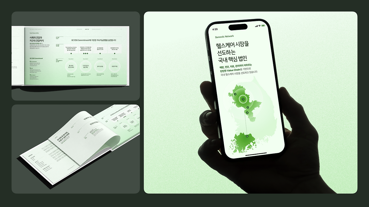 그래서 GC의 새로운 비주얼 아이덴티티를 기반으로, GC 그룹 전체를 대표하는 공식 그룹 소개서를 함께 기획하고 개발하기로 했습니다. 브랜드 경험의 시작점이자, 어디서든 동일하게 사용할 수 있는 핵심 툴로서 요. 이 글을 끝까지 보신다면, 비슷해 보이는 기업 소개서도 철저히 브랜딩 관점에서 만들 때, 어떤 디테일이 달라지는지 아실 수 있으실 거예요.