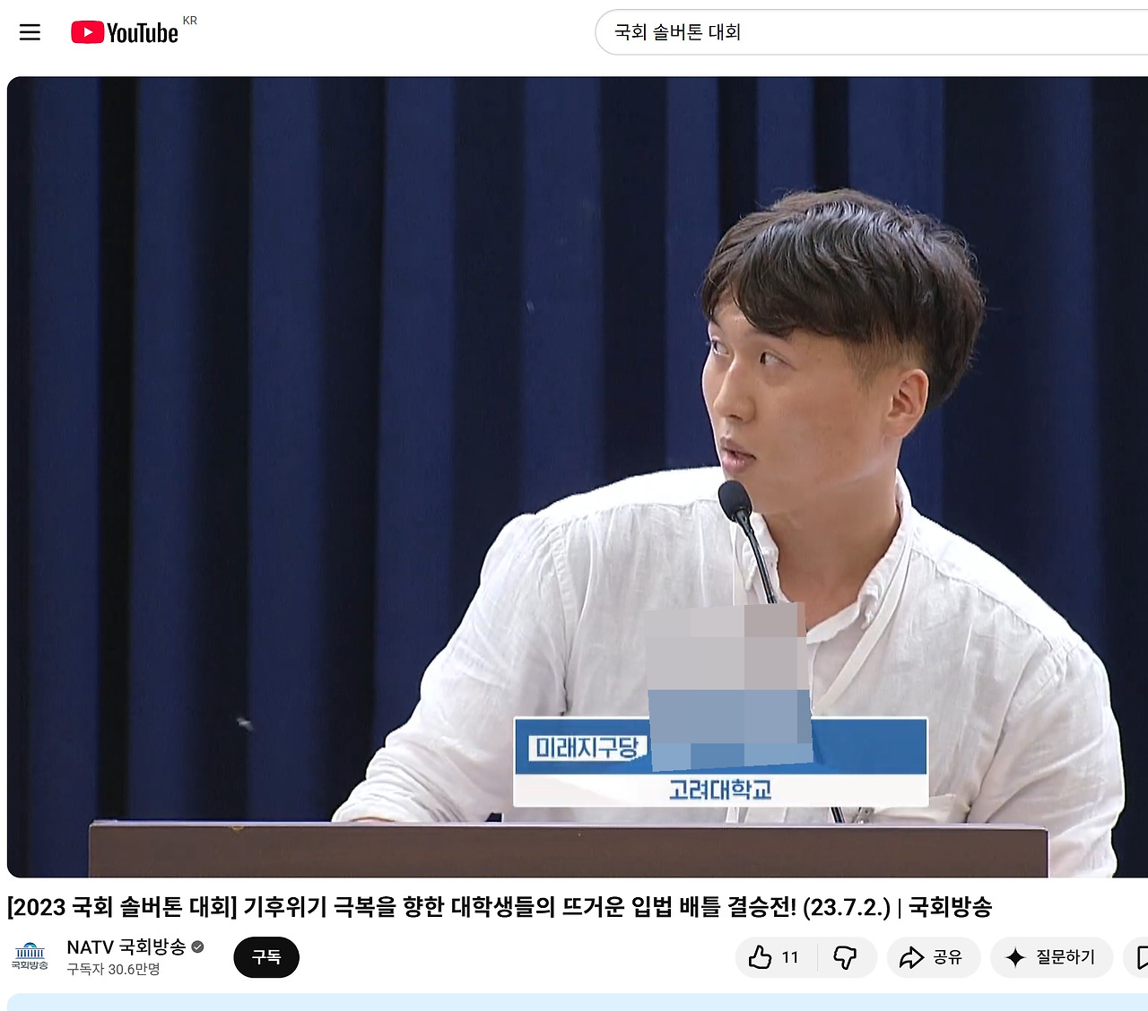 교환학생 철회 이후로는 말하는 것, 연설하는 것을 좋아하고 토론도 매우 좋아하기 때문에 고려대학교 중앙 토론동아리에 들어갔다. 국회에서 토론으로 최우수상(국회사무총장상)도 수상해 보고, 연세대학교와의 교류전에서 대표 토론자로 나서 보기도 하면서 비록 1년이었지만 최선을 다해 활동했다.