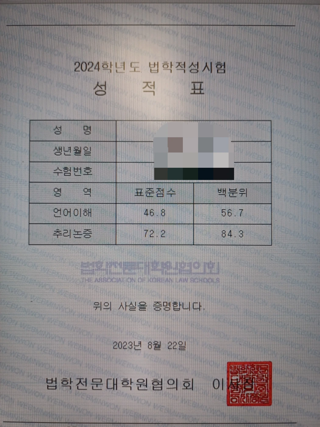 법학적성시험은 언어이해와 추리논증, 논술 세 과목으로 이루어져 있다. 그중 언어이해 과목의 경우 나는 처음 관광 리트를 응시했을 때 점수가 잘 나오지 않았고, 노력을 통해 40%p 가까이 백분위를 끌어올려 상위 1%(99.1% 백분위) 내의 성적을 받을 수 있었다. 아래는 그와 관련된 인증을 첨부한다.