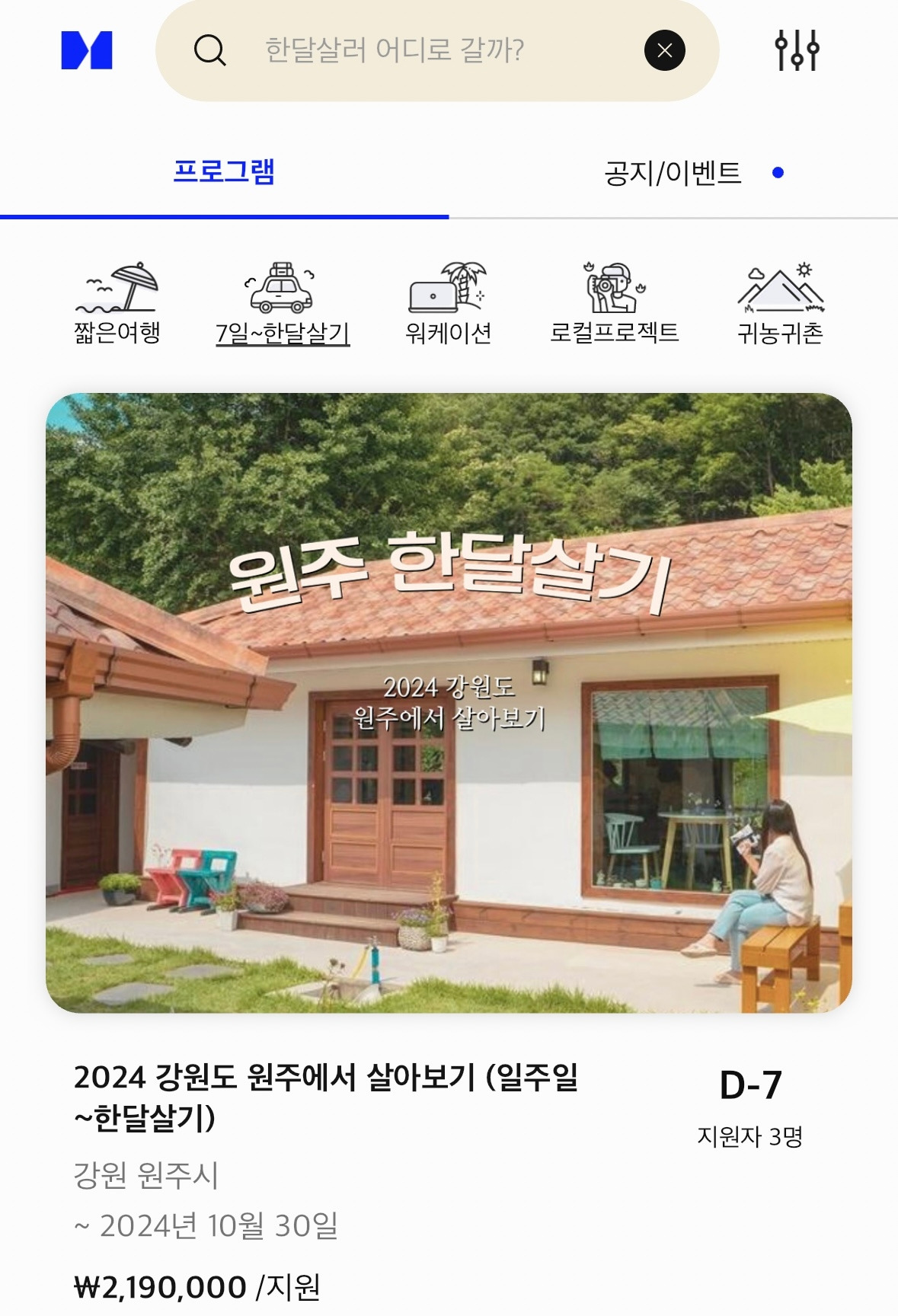한 달 살기에 관한 정보를 계속 찾아보다가 한 달 살기를 위한 앱과 웹을 발견했다. 바로 한 달 살기를 꿈꾸는 사람이라면 필수인 한 달살러앱과 마실이었다. 두 곳 모두