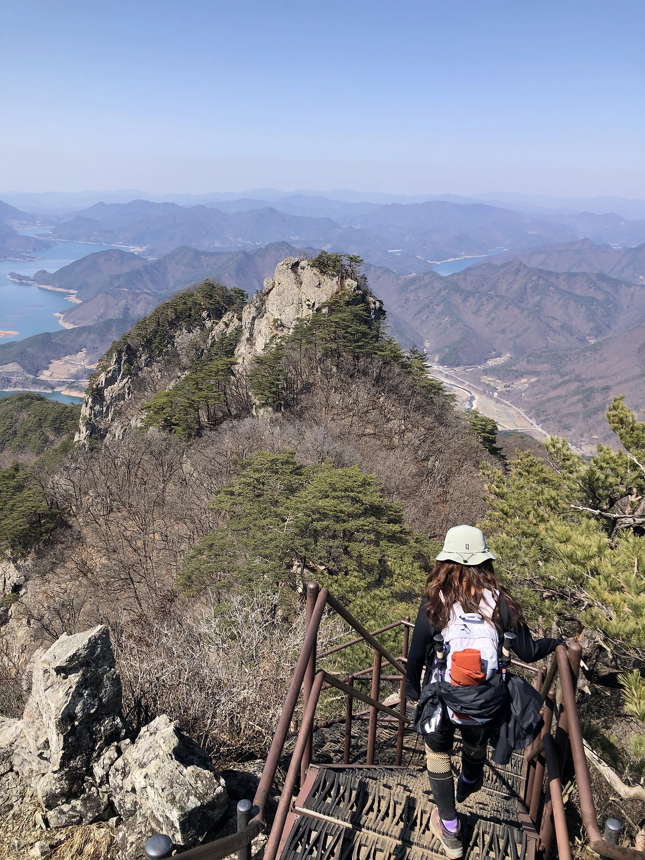 아직도 못 정했냐고 물어본다면 이렇게 뜸 들이는 건 30년 전 미스코리아 시상식 어그로 같으니 최애 산은 먼지산(먼저 지나가세요 산악회) 멤버 문주와 함께 금요일 퇴근해서 여의도 증권가를 벗어나 밤의 도로를 느릿느릿 달려 낡고 널찍한 펜션에서 하루 자고 나서 말도 안나 오게 좋은 날씨 속에 묵묵히(아니다 많이 떠들어서 목이 아팠던 것도 같고.) 올랐던 월악산이라고 발표해버린다. 나무도 없고 눈도 없는 3월에도 능선의 역동적 라인과 푸른 충주호를 등산 내내 보여주며 지치지 않게 해 준 월악산.