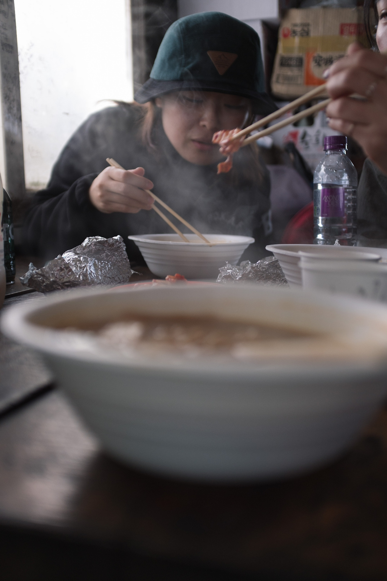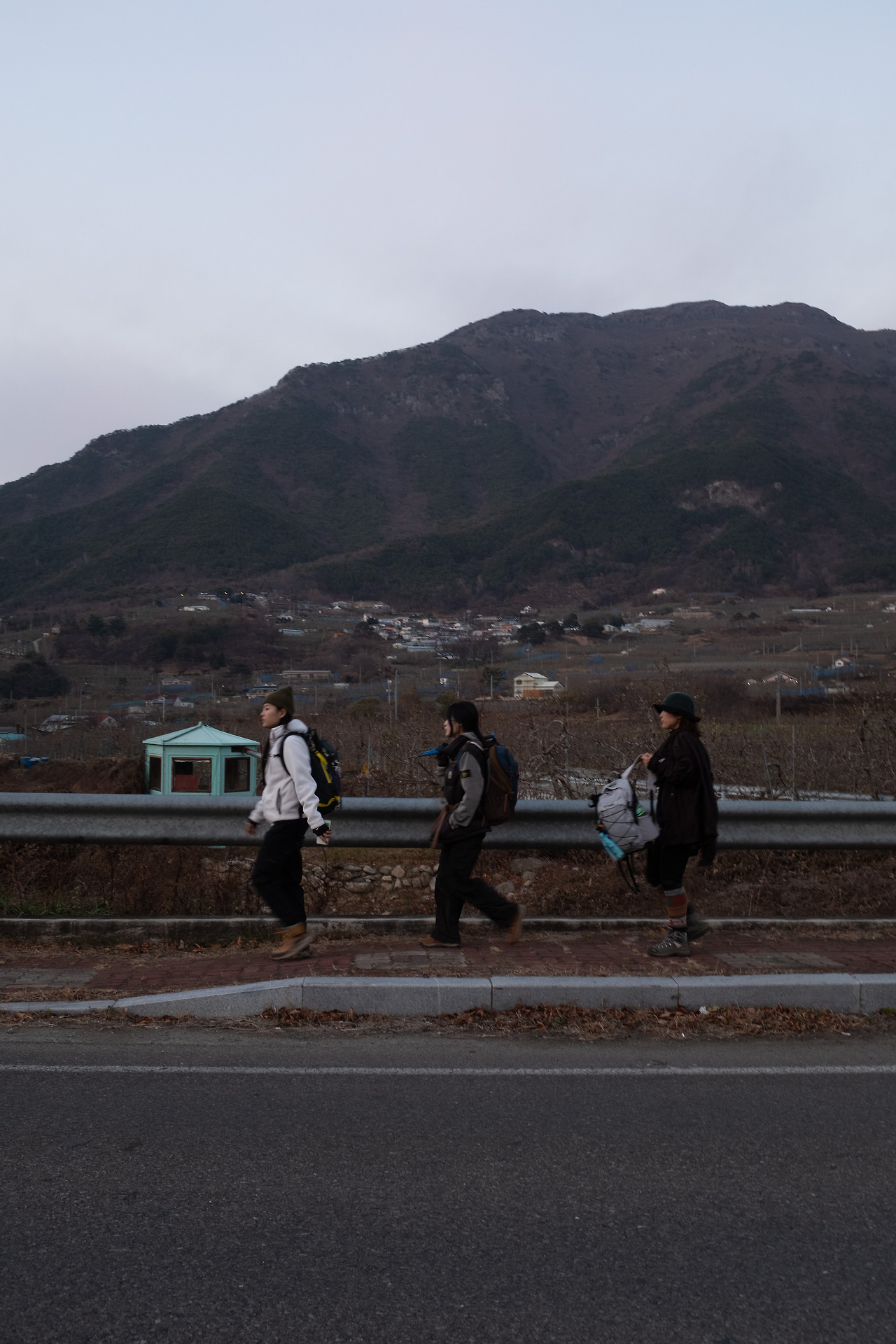 해도 뜨지 않은 12월 첫째 주 새벽 6시 50분 사당역 1번 출구에는 내가 타려는 버스 외에도 등산복을 입은 여러 사람들이 각자의 버스에 오르고 있었다. 안내산악회의 매력은 뜻밖의 것에서 발견되었는데 집단 수면의 베테랑들, 눈가리개, 목베개, 이어폰 등 다양한 아이템으로 고도의 수면력(?)을 선보이는 사람들과 함께 하는 것이었음 나 역시 수면부족의 직장인이라 이동수단에 몸이 실리면 금세 머리를 꾸벅이며 잠이 들곤 하는데 이날은 오래가지 못했다. 깊은 잠보다는 등산의 준비만 많이 해와서 별 도리없이 목이 옆으로 꺾인 채 잠을 잤기 때문이다. 조명을 다 꺼버린 버스는 칠곡휴게소에 도착해서 불을 켜고 20분 안에 버스로 돌아오라고 했다. 뜻밖의 해방감을 느끼며 우리는 버스에서부터 휴게소까지 달렸다. 이것저것 눈에 들어오는데 나의 선택은 어묵과 어묵 국물로 탄수화물 보충과 몸의 체온을 올렸다.