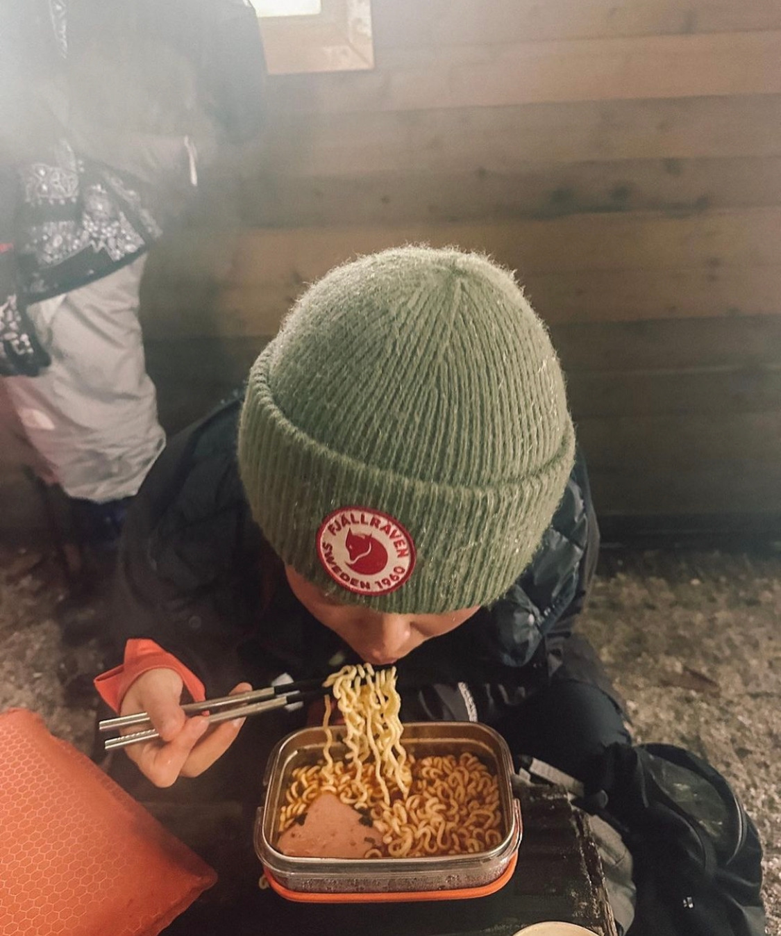 정상은커녕 점심을 먹기로 한 무인대피소를 찾아서 헤매고 있는데 안내산악회에서 카톡이 왔다. 지금쯤 하산을 시작하셔야 버스를 타실 수 있습니다…? 버스를 못 타는 것도 너무 무서웠지만 준비해 온 점심을 다 먹지 못하면 산행을 이어가지 못할 거 같았다. 무인대피소는 꽉 차서 겨우 비집도 앉을 정도의 틈이 있었다. 거기서 급하게 비화식용기에 너구리를 끓이고 스팸도 집어넣어 순식간에 고열량 식량을 만들어 말 그대로 위에 때려 넣었다. 급한 식사를 마치고 남은 오르막길을 올라 정상에 도달했다. 정상석에서는 인증사진도 건너뛰고 하산지점인 도마령으로 거의 뛰어내려 가기 시작.