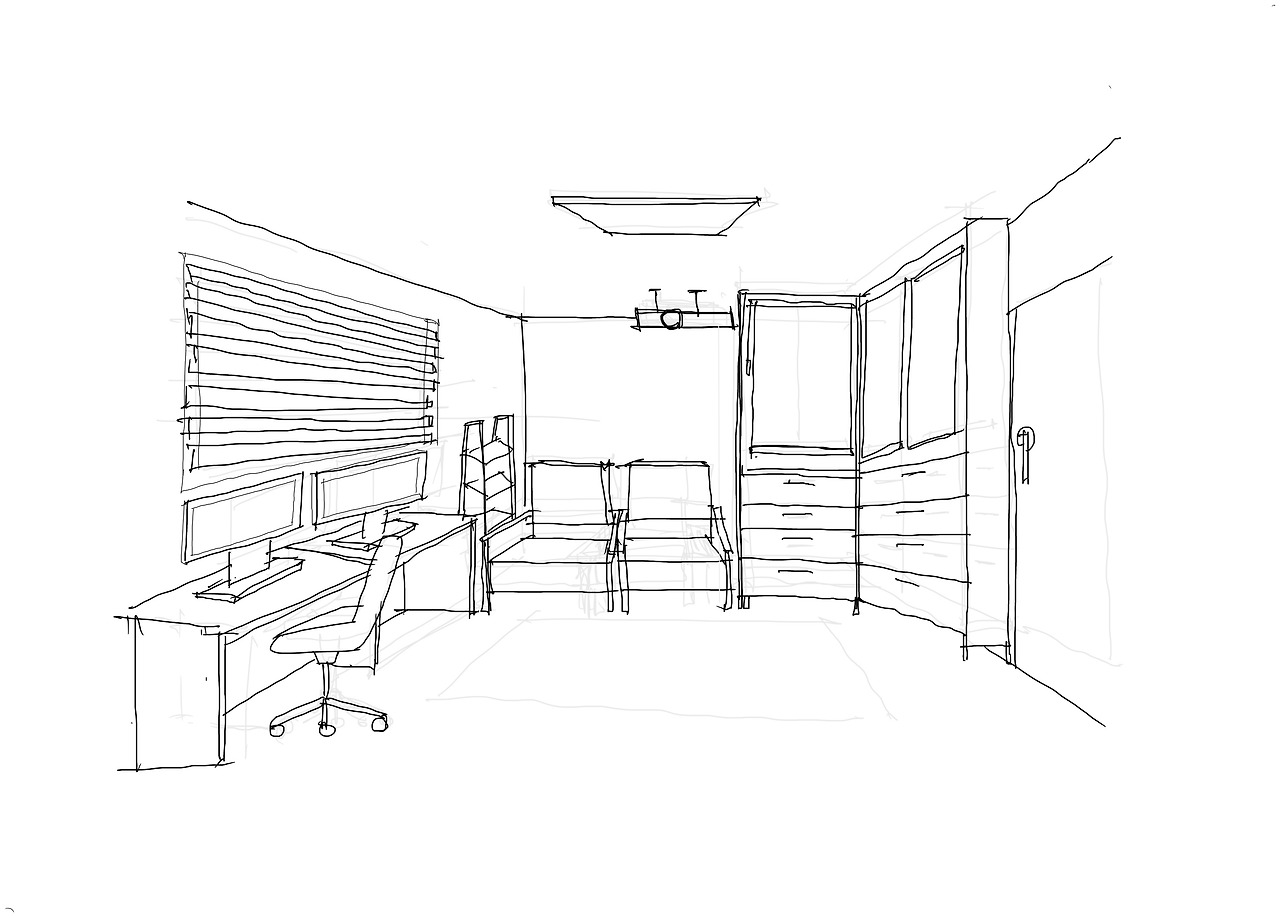 다목적 룸엔 소파도 있고 책상도 있고 식탁도 있고 옷장도 있다. 식탁은 접이식으로 옷장은 창문이 있는 벽을 빼고 둘렀다. 옷을 가릴 수 있는 롤블라인드가 있는 옷장으로 방배동 가구거리에 있는 가구점에서 제작했다. 집이 좁아도 각자 작업할 책상은 있어야 한다는 게 암묵적 룰이었기 때문에 책상도 커플로 구매했고 친구들이 자주 놀러 오니까 닌텐도도 있어야 하고 식탁스툴도 몇 개 더 필요하고… 영화를 볼 때는 큰 화면이 필요하니 빔프로젝트 까지 이 모든 것이 놀랍게도 하나의 방에서 이뤄졌다. (집안에서는 아무것도 안 한다며…)
