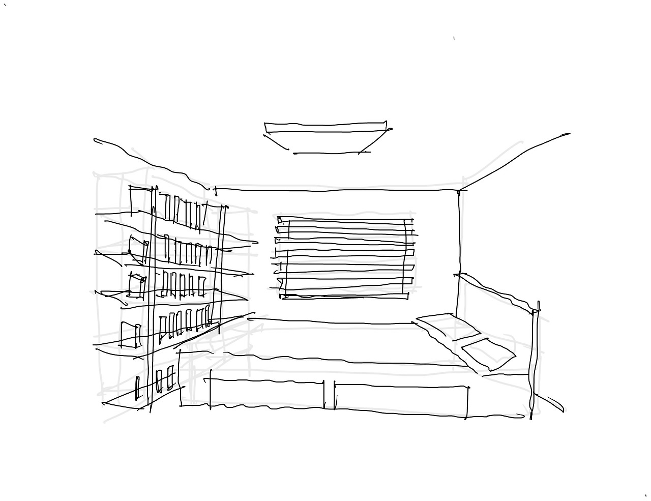 침대는 한쪽 통로만 있어 안쪽에는 출근시간이 더 늦은 사람이 잤다. 침실에서는 정말 잠만 잤다. 침실에는 책장이 있었는데 침대에 책장이 꽉 끼어있어 맨 아래칸 책장의 책들은 꺼내기를 체념하고 살았다.