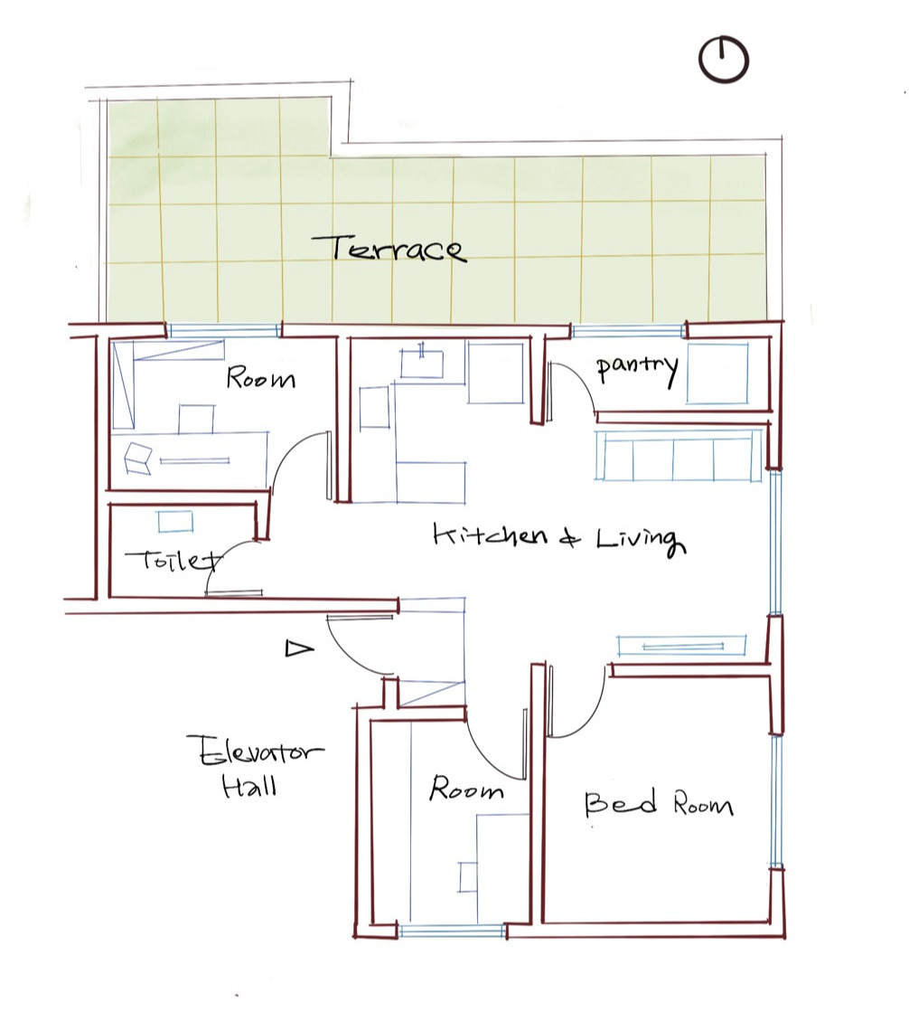암사동테라스는 우리가 이 집을 선택한 가장 큰 요소였는데 생각보다 대단히 유용하지는 않았다. 현관문과 연계된 테라스, 한때 일본에서 유행했던 아파트의 마당형 발코니처럼 생겼어야 했다. 마당처럼 매일 지나쳐야 그 공간을 연속적으로 인지하고 활용하게 되는데 평면상 내방과 세탁실과 연계된 테라스는 뭔가 큰맘 먹어야 나가게 되는 공간이 되었다. 게다가 널찍한 테라스에서 라면도 끓여 먹고 광합성도 하고 그럴 줄 알았는데 주변의 우리 집보다 높은 아파트나 다른 건물들에서 내려다볼 수도 있는 시선에서 자유롭지 못했다. 여성인 나보다는 노출에서 자유로운 남편은 개의치 않고 테라스에서 커피로스팅도 하고 취미생활을 즐겼다. 나는 현관문과 연결되어 집을 나서거나 들어설 때 자연스럽게 밟게 되는 테라스가 아니라면 활용도가 떨어진다는 사실만 알게 되었다.