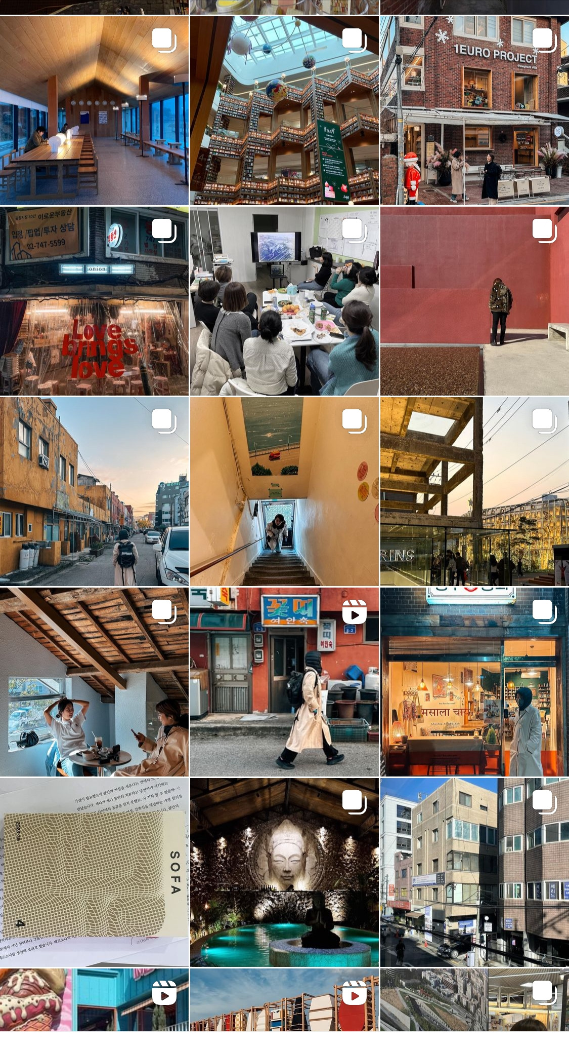 약 700개의 게시글이 있는 인스타그램 계정 중 하나에는 국내외 도시를 돌아다니며 인상적이었던 장소들을 업로드하고 있다.