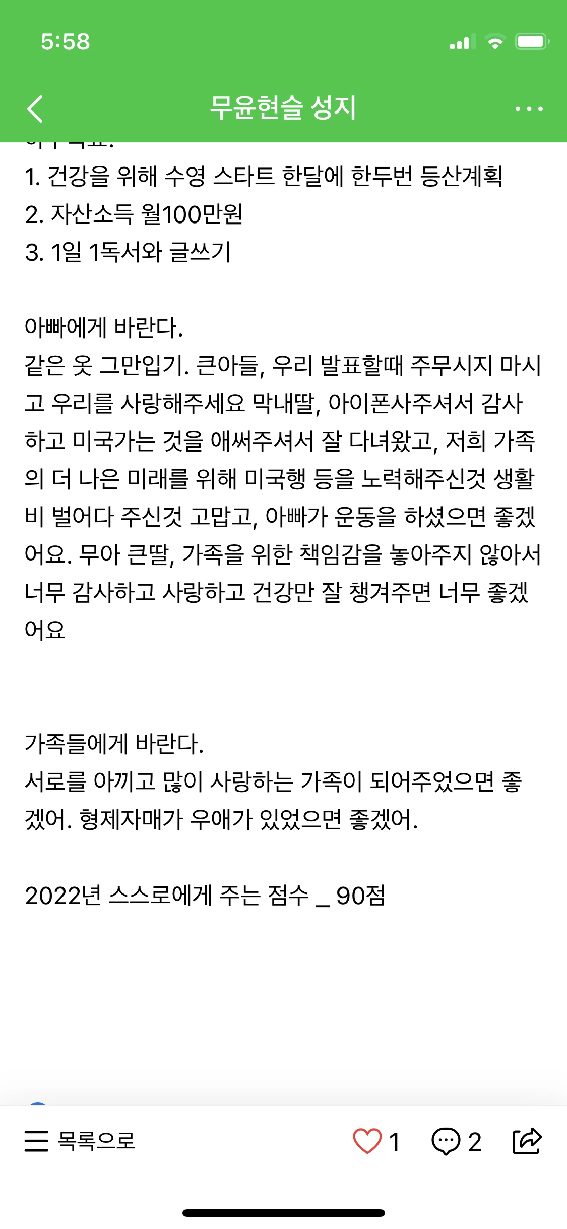 사사로운 가족 스토리지만, 가까운 가족끼리 이렇게 신년목표 회의를 하고 영상을 찍고 기록을 하는게 더 신기한 일이라고들 하니 이 행적을 기록&저장용으로 올려본다.