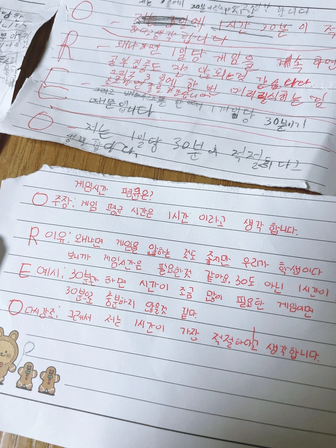 아이들은 글을 한바탕 쓰고 나니, 분위기는 한결 차분해졌고 이후에 (제 기분탓인지?) 서로의 이야기를 더 잘 들어주는 분위기로 전환된 것 같고, 무엇보다 게임시간에 대해 생각하는 나름의 언어화된 정의가 생겼어요.