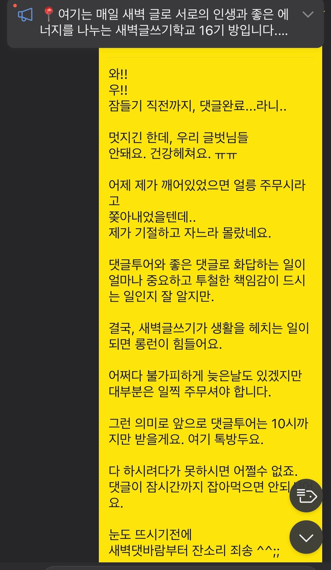 오늘 새벽에는 본의아니게 잔소리로 톡방을 열게 되었어요.