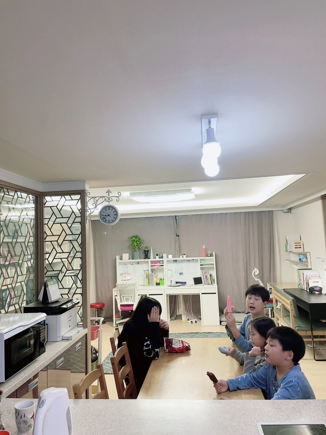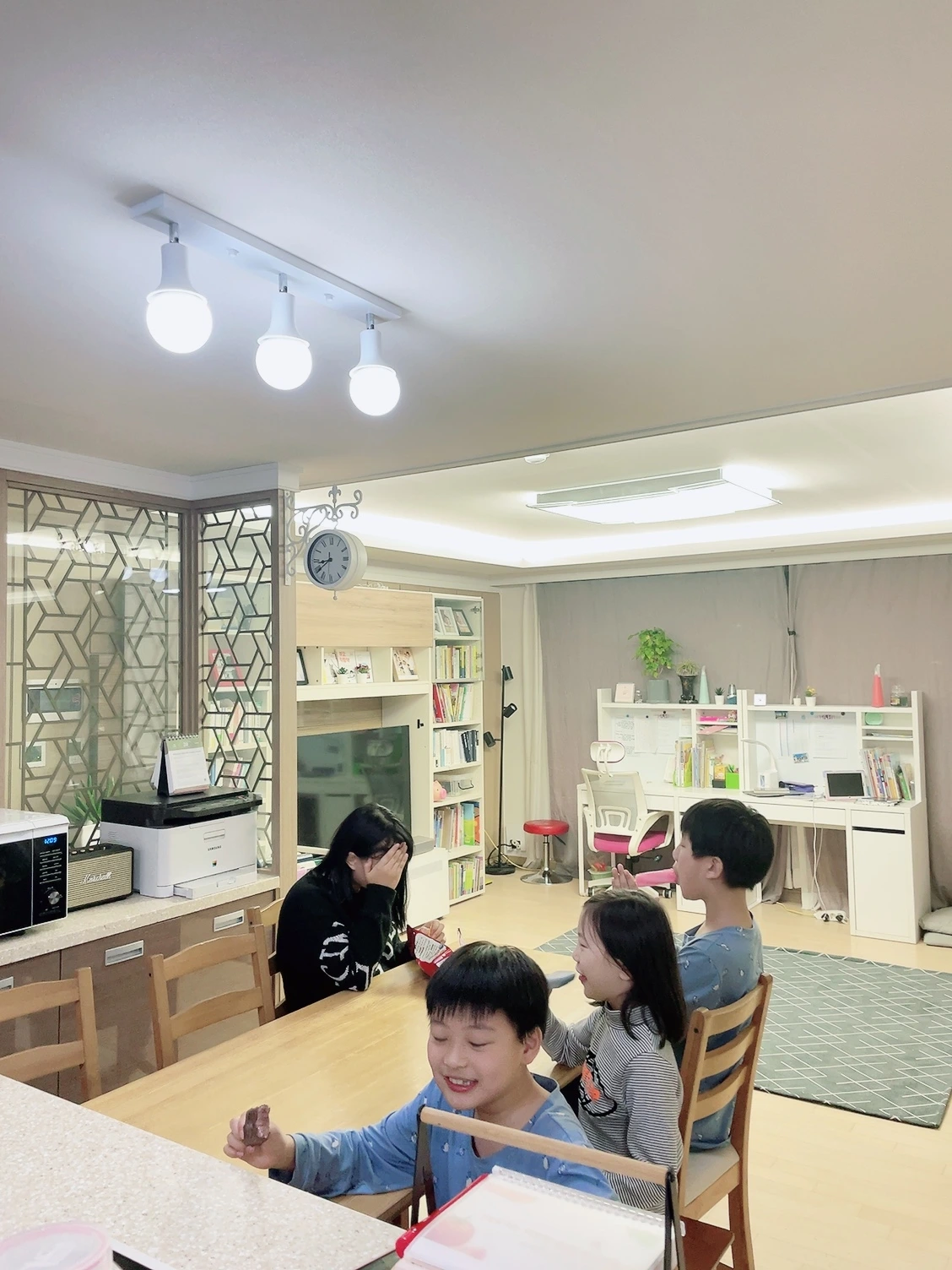 어짜피 이 에너지 많은 네 아이에게 각방을 줄 수도 없는 노릇에다가 사람은 뭐든 “함.께.할.때” 시너지가 난다는 점을 착안해서, 이번에 이사를 하면서는 아예 거실을 ‘공동 공부공간’으로 만들어 버리자고 결심한거죠.