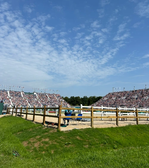 그렇게 숲길을 걷고 무사히 경기장으로 도착하니 경기는 이미 시작하고 있었다. 사실 우리는 승마 경기를 한 시간 정도만 보고 양궁 경기장으로 바로 가려고 했다. 양궁은 한국 선수들이 출전할 예정이었으므로 꼭 입장해야 한다는 생각이었다. 축구의 여파로 늦게 입장하면 안 될 것 같다는 생각에 꼭 맞춰서 가려고 했다. 따라서 한 시간 반 정도 보고 가려고 했던 우리 계획은 한 시간 정도 보고 나오는 것으로 변경되었다. 그리고 본격적으로 경기를 보았다.