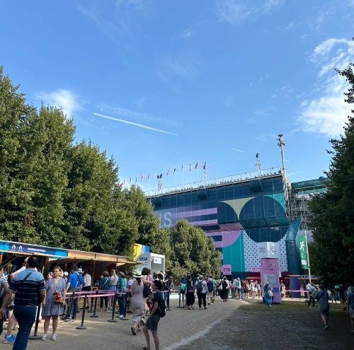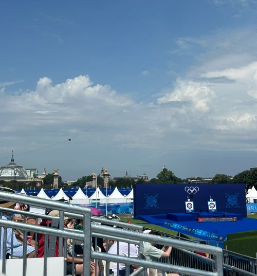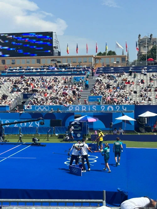 호텔에서 씻고 태극기를 야무지게 챙긴 후 앵발리드 양궁 경기장으로 향했다. 사람들이 가득했던 양궁 경기장. 경기는 12시부터 시작이었고 우리가 경기장에 도착한 시간은 한시 반 정도였다. 우리는 입장 시간보다 늦었음에도 입장이 가능했음을 승마 경기에서 확인했기 때문에 양궁 경기장도 당연히 입장 가능할 것이라고 생각했다. 그리고 다행히도 무사히 입장할 수 있었다. 입장 직전까지는 약간 긴장했는데 무사히 입장하고 나니 마음이 싹 놓였다. 한국 경기인데 꼭 봐야만 했는데 무사히 입장했다니! 한시름 놓았다.