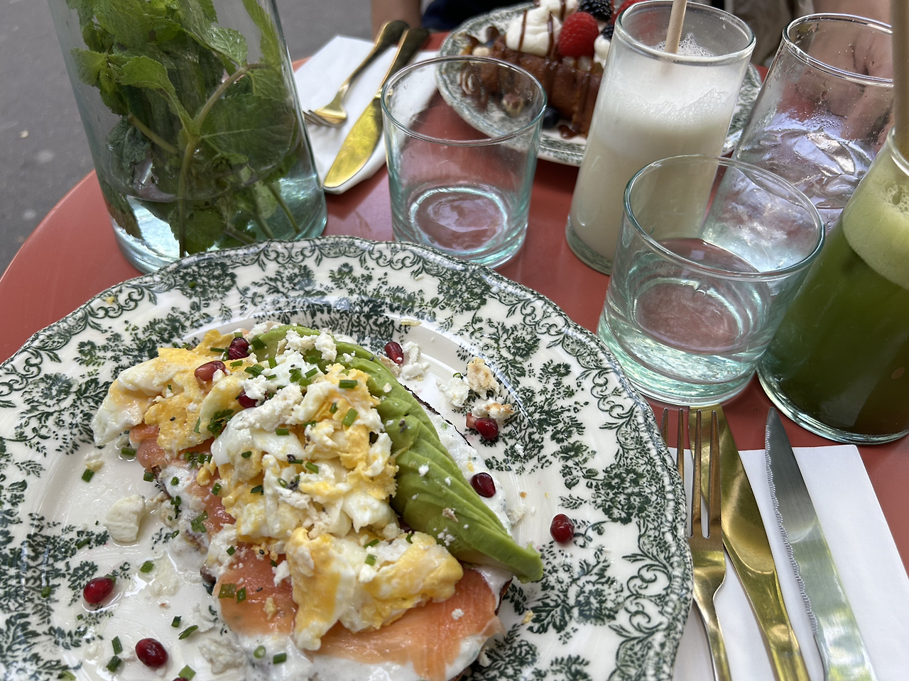 아름다운 풍경을 보다가 다시 지쳐올 때쯤 이젠 내려가야겠다는 생각이 들었고 대강 10분 정도 있다가 내려왔다. 맑은 하늘 = 땡볕이었기 때문에 오래 있을 수가 없었다. 얼른 내려가서 마실 것 좀 마셔야지 하는 생각을 갖고 근처의 레스토랑을 찾아본 후 구글 리뷰가 높은 곳이었던 AZUR CAFE로 들어갔다. 시원한 물을 무제한으로 제공하던 식당. 역시 리뷰가 높은 이유가 있었다. 음식도 꽤나 맛있었기에 만족했다. 이렇게 허기짐과 갈증을 해소한 후 샹젤리제 거리로 향했다.