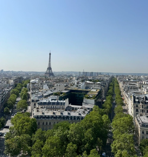 개선문 전망대에 무사히 도착했을 때 들었던 생각은 '안에 정수기가 있었으면 좋겠다! 아니면 매점이라도 있을까? 얼른 물을 마셔야겠다!'라는 생각이었다. 지금 물 안 마시면 죽겠다는 생각밖에 들지 않았다. 하지만 놀랍게도 정수기, 매점 이런 건 전혀 없었다. 사막이나 다름없는 개선문. 어쩔 수 없으니 조금이라도 버티면서 바깥을 구경했다. 탈수증이 올 것 같았지만 맑고 예쁜 풍경을 보니 괜찮아지는 것 같기도 했다. 막상 찍었던 사진들을 보니 놀랍게도 우리 부부 모두 활짝 웃는 표정이었다. 아름다운 파리 시내 풍경을 보며 정말 괜찮아지고 있었던 걸지도. 뜨겁지만 맑고 아름다웠던 파리 시내.
