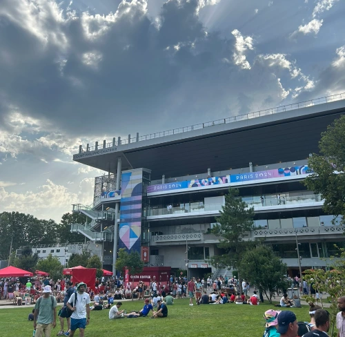 무사히 입장한 롤랑가로스. 롤랑가로스는 놀이공원 같았다. 수많은 사람들과 신난 표정의 사람들. 올림픽 체험 부스 등 다양한 것으로 가득했던 롤랑가로스. 우리는 롤랑가로스의 주요 경기들이 펼쳐지는 메인 코트인 Philippe chatrier court에서 진행되는 경기로 예매를 했었다. 입장하면 바로 보이는 우리의 경기장! 가슴이 두근두근 뛰었다.