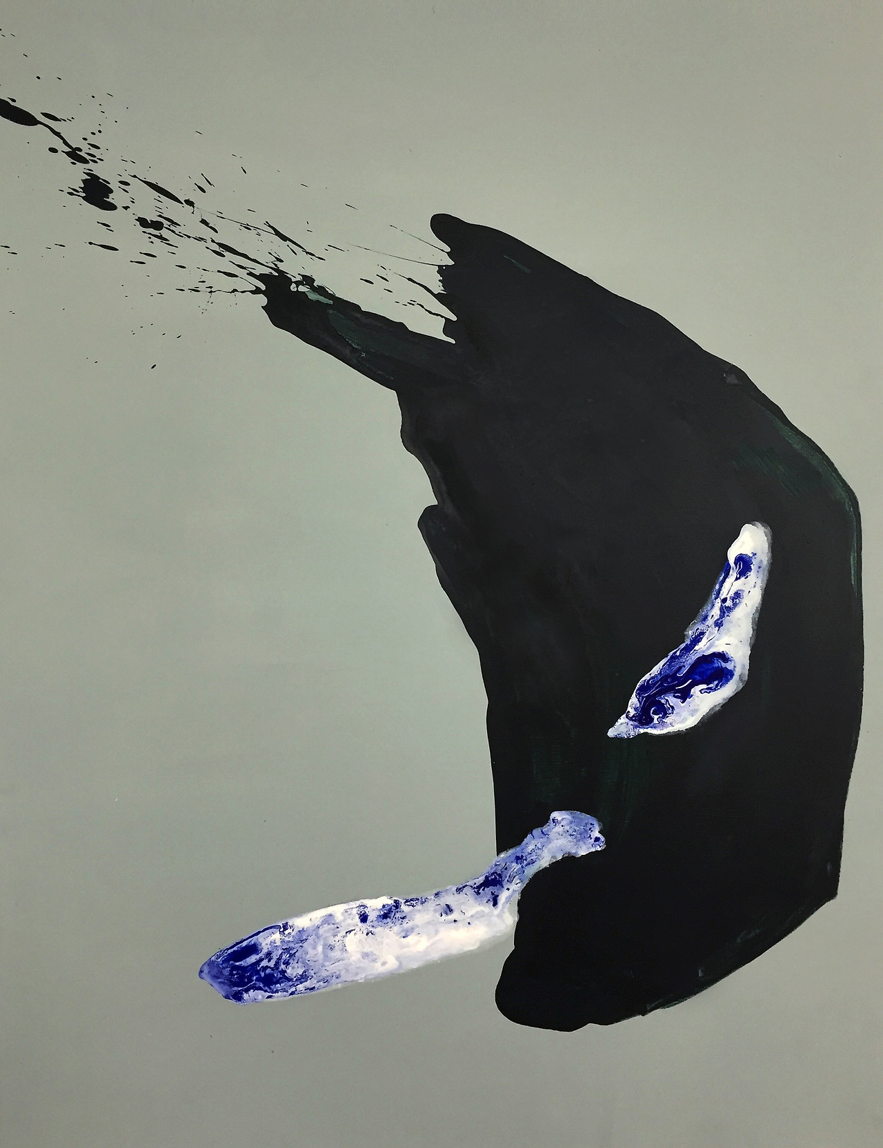 캐리리 작가는 여러 개의 캔버스를 바닥에 늘어놓은 후, 불규칙적으로 파란 물감을 칠한다. 그 물감이 캔버스에 닿는 순간은 마치 ‘완벽한 추상’이라는 개념이 존재하기라도 하듯 자유롭다. 그러나 ‘완벽한 자유(utopia)’는 더더욱 형상화할 수 없다. 자유는 결과가 아닌 과정이기 때문이다. 그의 작업에는 반드시 필요한 과정들이 있다. 먼저 작가는 마음에 드는 색과 형태가 나올 때까지 물감을 쌓고 또 쌓으며 바탕을 깐다. 그렇게 깔린 물감들은 특유의 묵직함과 색을 품고 있다. 그 촘촘한 바탕 위에 작가는 물감을 흠뻑 적셔 뿌리거나 칠해, 물감의 질감이 확연히 느껴지도록 표현한다. 그리고 아크릴, 연필, 오일 파스텔 등 혼합매체를 이용하여 캔버스 위에 표현된 획들은 때론 먹먹하게, 때론 고요하게, 때론 격동적으로 변주되며 특정한 모습을 의도하지 않은 듯하면서도 어쩐지 비슷한 모습을 갖고 있다. 조금 짓궂게 표현하자면, 흡사 병적으로 집착하는 작업 과정은 작가의 의도와 그의 기저에 깔린 ‘경계인’으로서의 불안으로부터 탄생한 무의식의 만남이다. 완벽한 자유와 규칙사이에 자리한 캐리리 작가의 내면으로의 침투는 짙은 파랑과 묵직한 물감 사이에 자리하고 있다.
