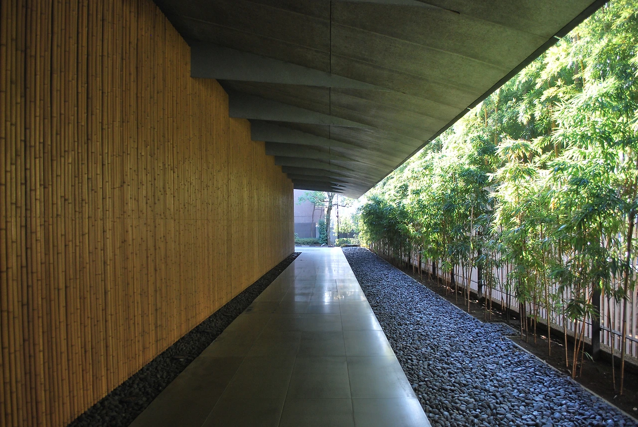 이곳이 바로 대나무 숲으로 불리는 미술관의 입구이다. 네즈미술관의 매표소, 즉 전시장 입구로 향하려면 위와 같은 산책길을 따라가야 한다. 다소 인공적이나 정적인 수직의 미를 자랑하는 좌측의 통로와 빛을 받아 대나무 본래의 모습으로 연출한 우측의 공간은 같은 대나무로써 연출되었지만 전혀 다른 모습으로 일본 정원의 아름다움을 형상화한다. 명상과 사색이 필요한 정원으로 가는 길조차 여운을 주는 면이 미술관의 목적을 관통하는 듯싶다. 아름다운 정원으로 유명한 네즈미술관의 첫인상을 강렬히 심어주는 인트로(intro)로서 톡톡한 역할을 하는 이 곳은 전시의 시작과 끝에 많은 이들의 기억에 시원한 대나무 향을 남기곤 한다. 오히려 더하지 않고 비어내 초록으로 가득한 공간은 되려 커다란 부피감으로 존재한다. 도심 속 산책의 공간이랄까.