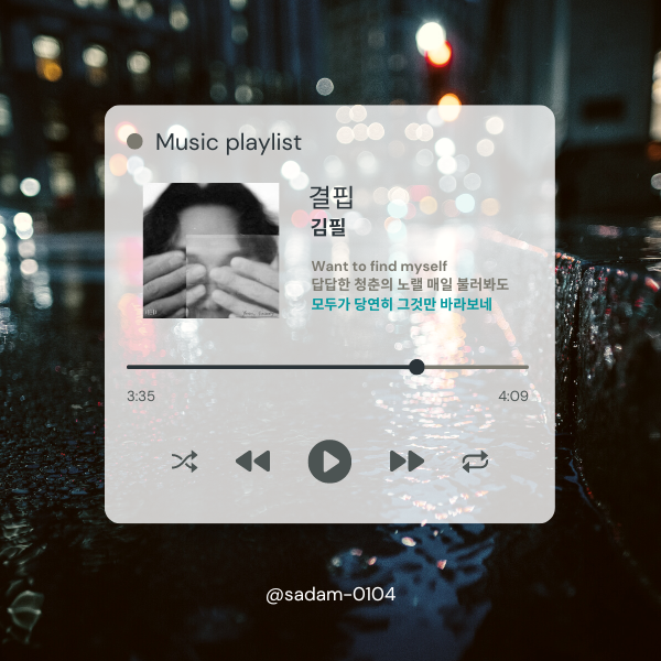 답답한 청춘의 노랠 매일 불러봐도 모두가 당연히 그것만 바라보네 증명하는 시간은 곧 지겨워져 별 감정 없이 누구의 마음에 드는 일도 누구라도 좋으니 내 얘길 좀 들어줘