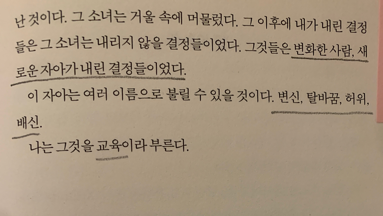 마지막 챕터에 이르러 마침내 무릎을 치게 만들었던, 이 책을 통틀어 가장 좋았던 마지막 문장들을 남겨본다.