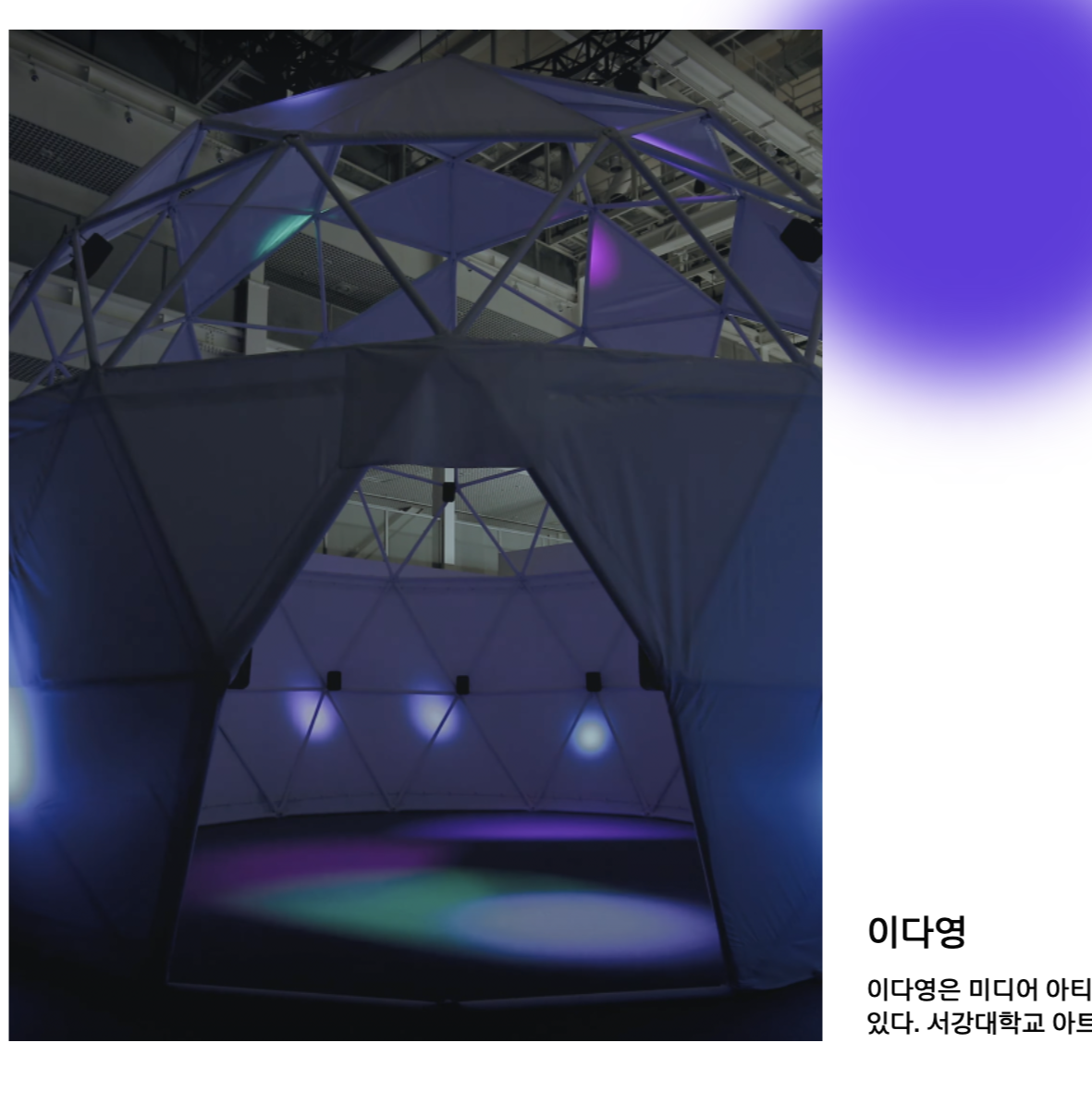 'Eco-Square'라는 컬렉션에 사용된 돔 구조물 이미지가 사람을 설명하기 위한 프로필 사진으로 재사용된 것도 비슷한 경우이다. (아마도 다영이가 이미지를 주지 않아 다영의 작품을 프로필 사진으로 사용한 것이겠지만) 같은 이미지를 다른 층위의 다른 항목을 설명하기 위해 반복적으로 사용한 순간 이미지는 고유의 의미를 전달하는 힘을 잃게 된다.