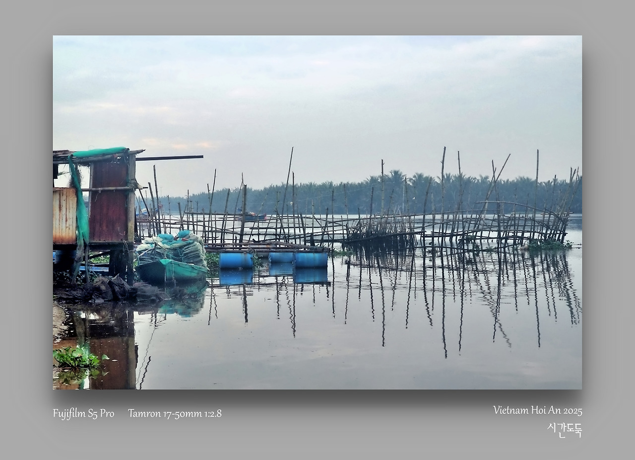 모양이 제 각각인 배들과 고기잡이를 위한 죽방