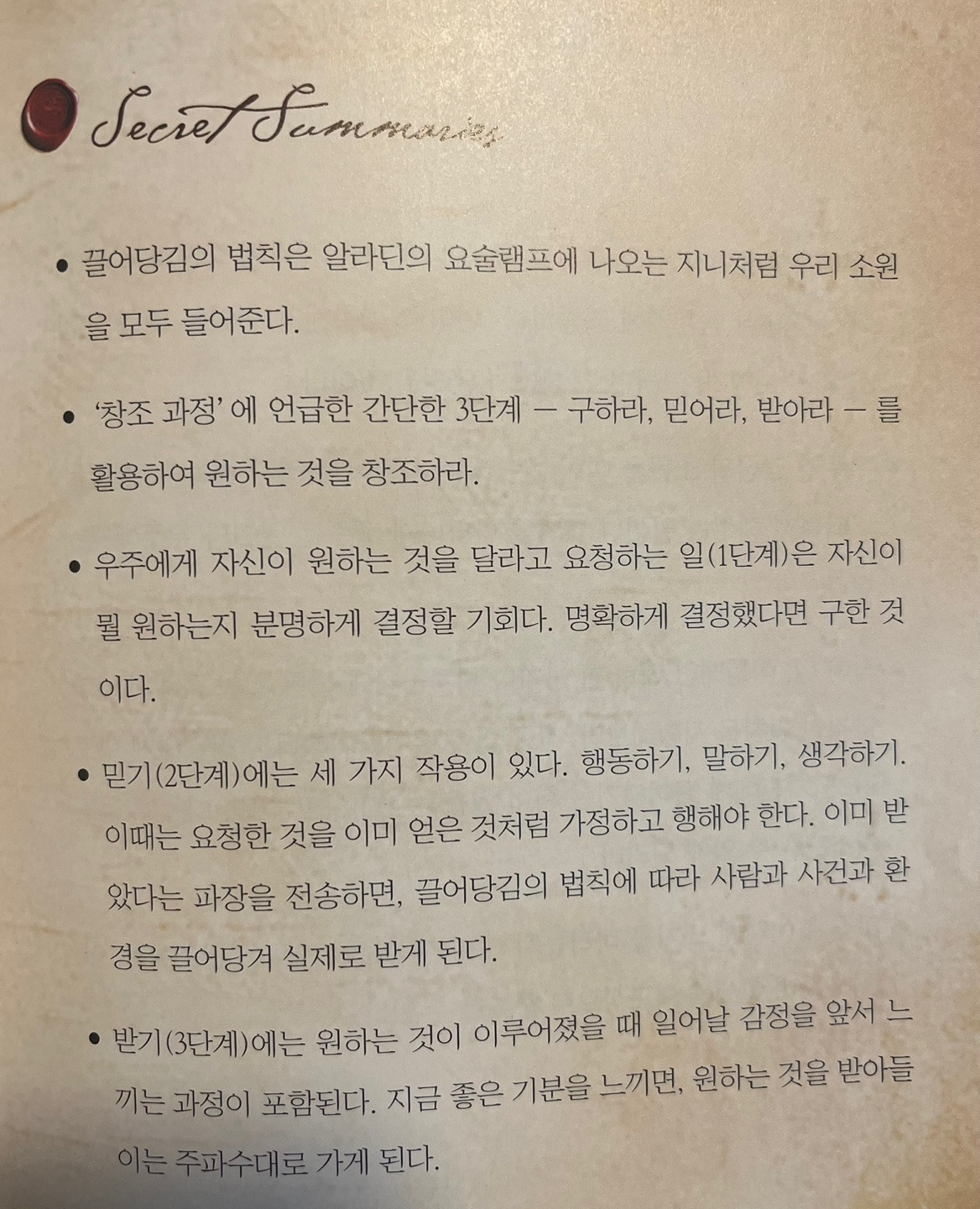 <파리에서 도시락을 파는 여자>의 저자인 세계 부자 중 한 분인 '켈리 최'가 말한다. 우주의 "비밀", 바로 "시크릿"이 있다고. 그 비밀이 담긴 이 책을 60번 읽고 그녀의 인생이 달라졌다고 한다. 대체 이 책이 무엇이길래, 켈리 최 사장은 매일 '이 비밀'을 실천하라고 하신 걸까?