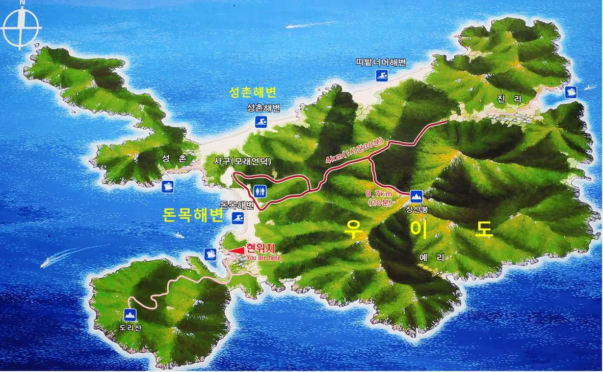 우이도는 해변을 제외하고는 바위 절벽으로 둘러싸여 있어 동서 끝으로 동쪽에는 진리마을, 서쪽에는 돈목마을로 정착을 하고 있다. 차도가 없기 때문에 마을 간 이동을 위해서는 3~4시간의 산행을 감수해야 한다.
