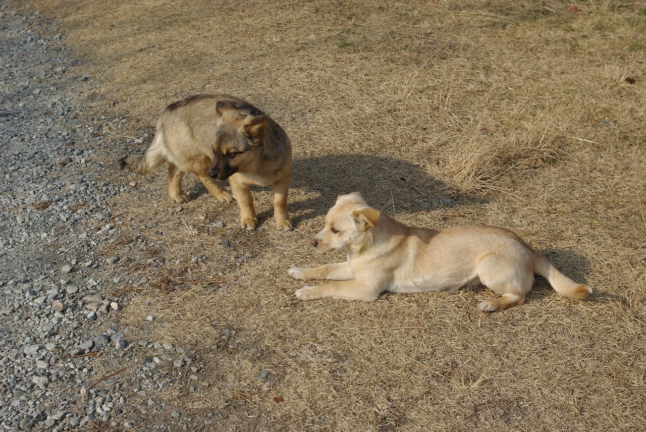 하트해변으로 내려서면 강아지 두 마리가 반갑게 맞이한다. 사람을 그렇게 경계하는 눈치가 아니다. 주인 없이 해변에서 계속 자라 온 것 같지만 샤워장 건물 옆에 사료와 물을 놓고 간 걸 확인하니 누가 챙겨주는 분이 있다는 것에 조금은 안심이 됐다.