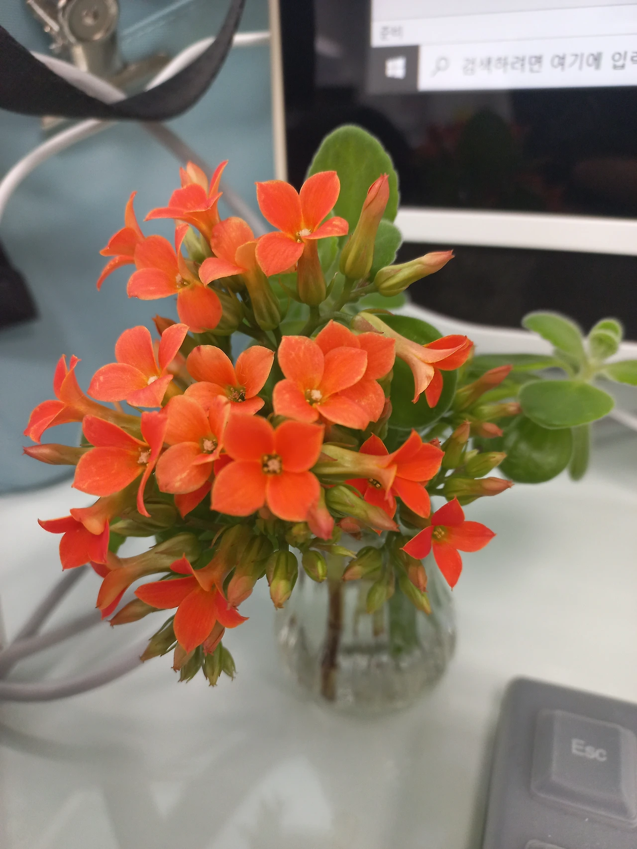 오늘은 집에 있는 꽃과 초록이 몇 개를 가지 쳐서 모둠으로 심어 보았다.