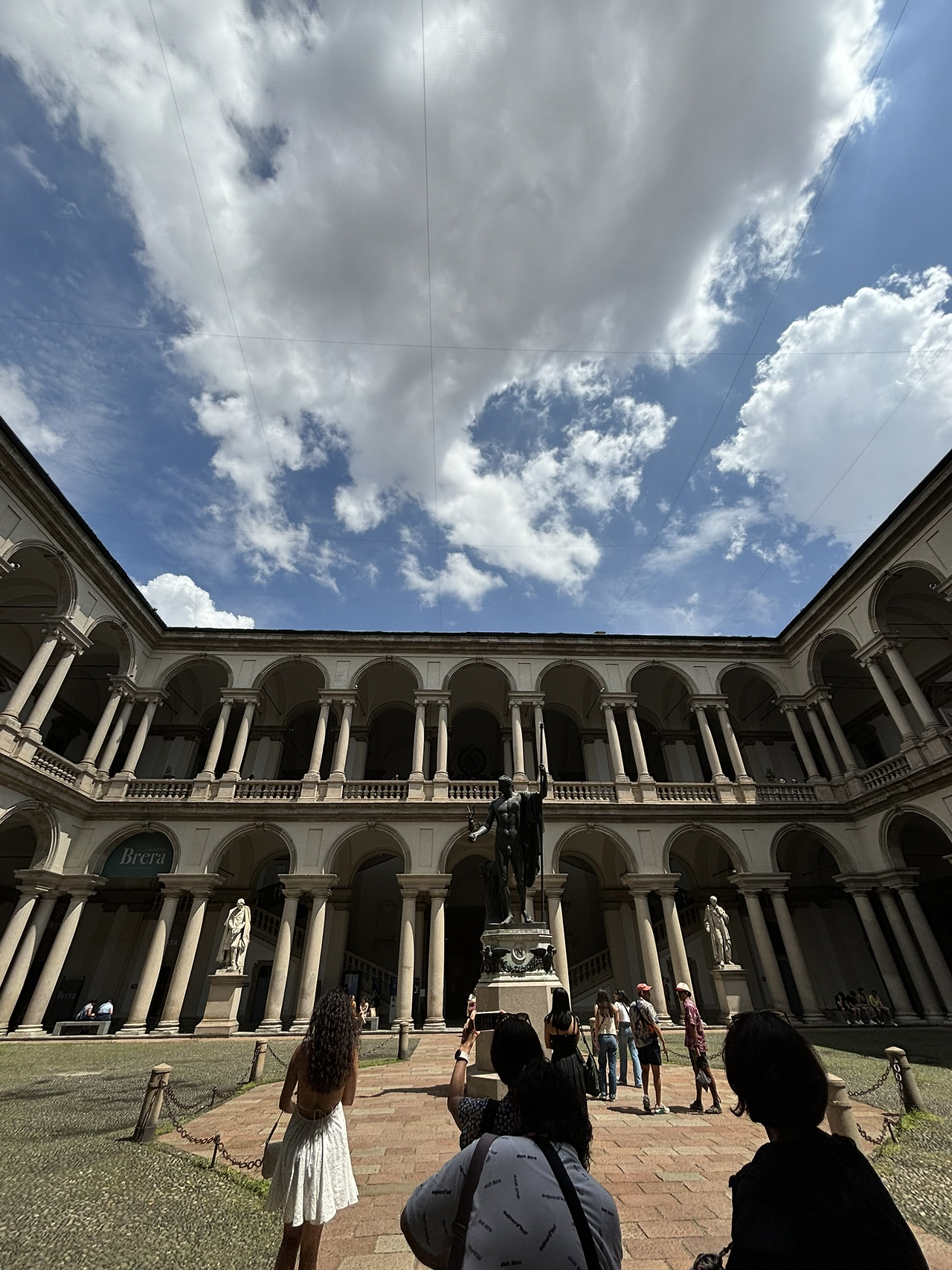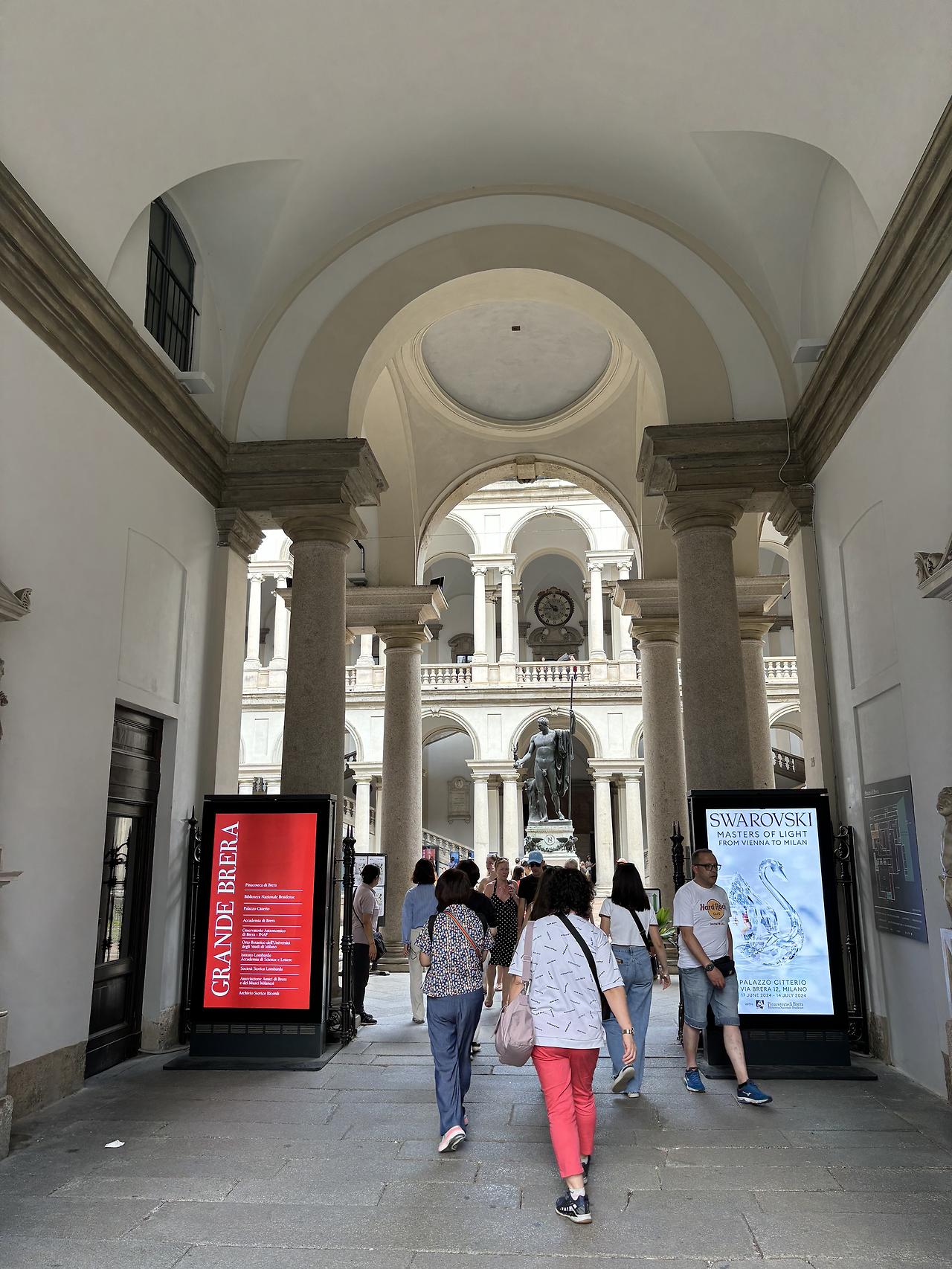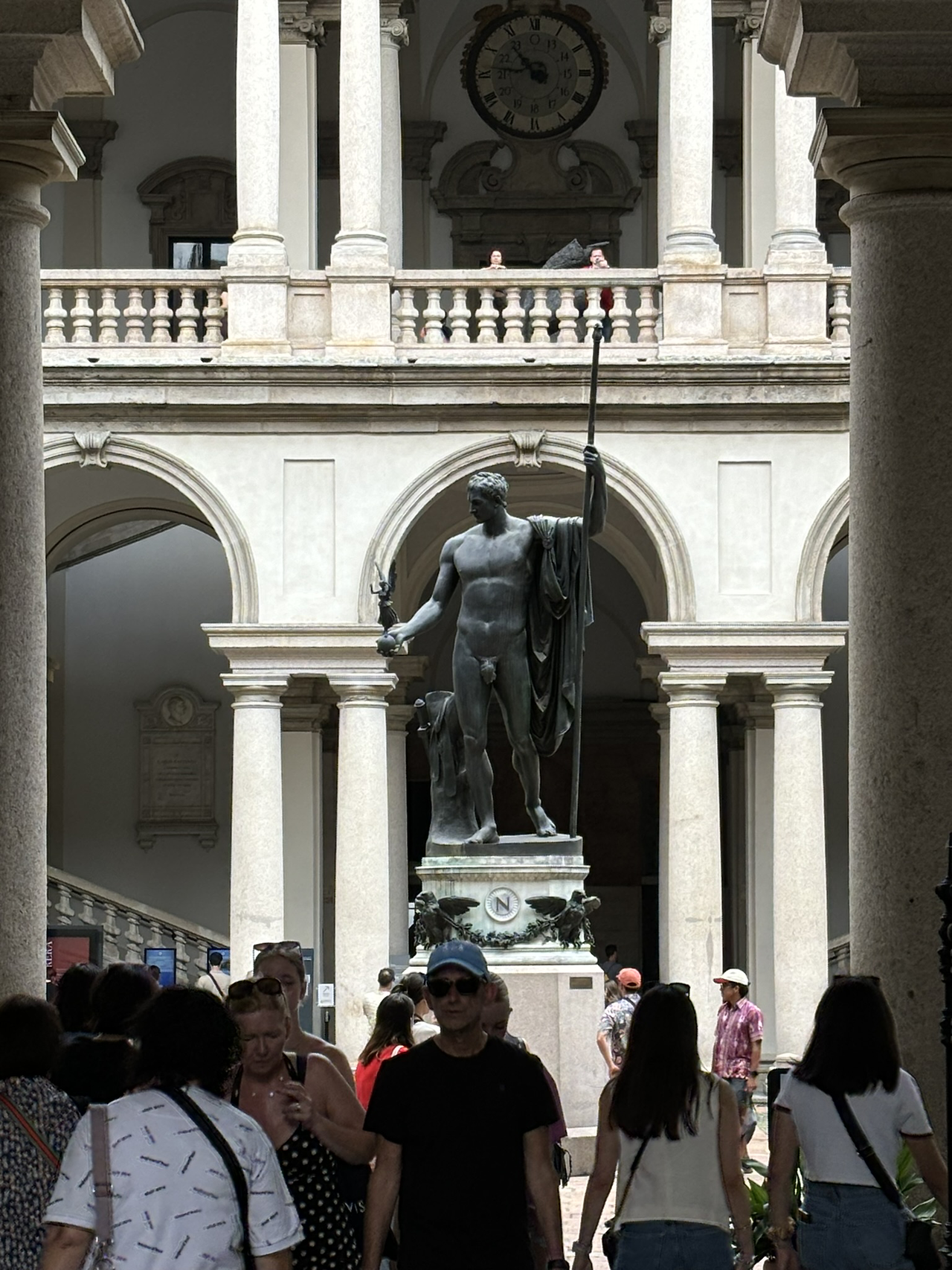 (전쟁 중에도 수레에 책을 담고 다녔던 독서가이니까) 이런 미술관을 만들었다니 의외였습니다. 나폴레옹은 밀라노를 이탈리아의 파리로 만들려고 했나 봅니다. 1809년에 문을 연 이곳에는 회화 그림들이 1000여 점 있다고 합니다. 그래서 미술관에 들어서면 보이는 조각이 바로 나폴레옹의 모습입니다.