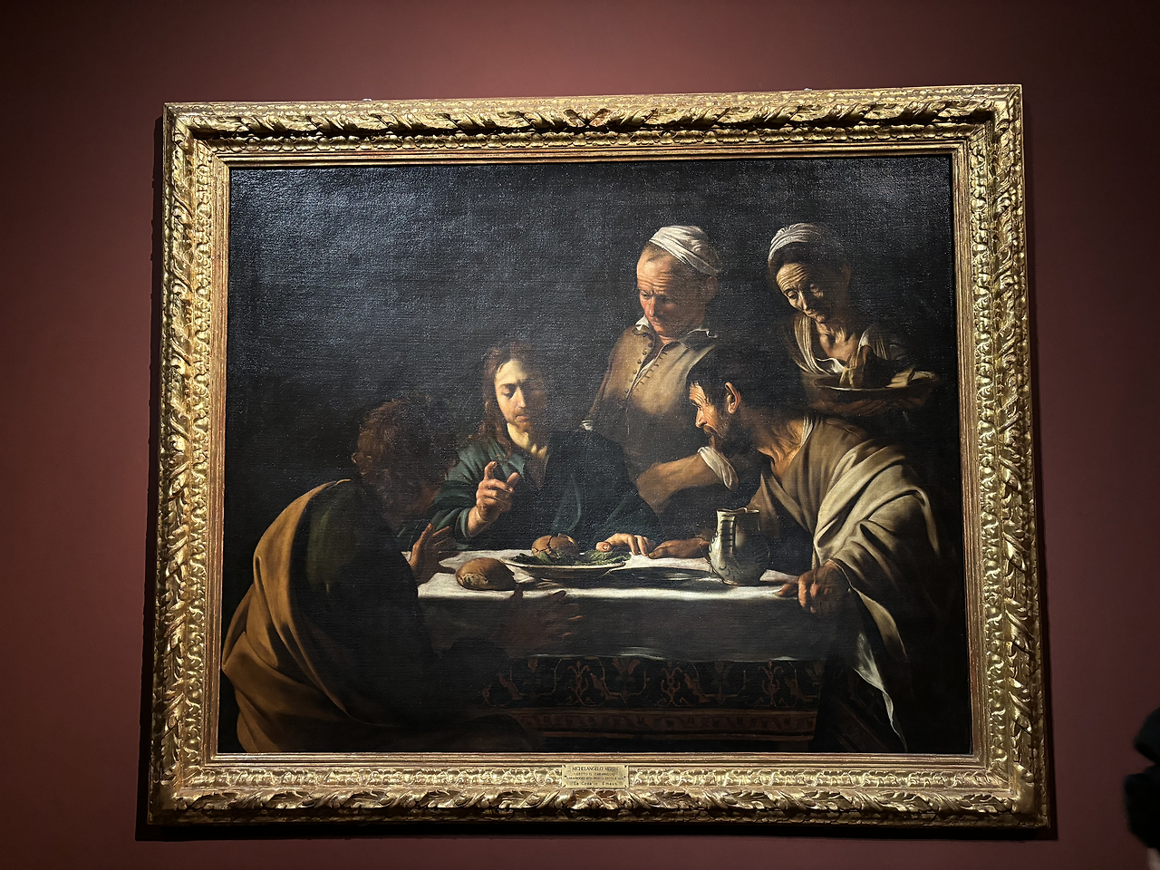 앞에서 예수님의 죽음을 보았다면 이제 그의 부활을 볼 수 있는 그림이 바로 카라바조의 그림입니다. 배경이 어둡고 빛이 인물들에게만 향하고 있어서 부활한 예수님과 대화를 나누는 제자들. 마치 영화의 한 장면을 보는 듯한 생동감이 느껴집니다. 테이블 끝을 잡고 있는 손 하나가 주는 긴장감이라니. 드라마틱한 표현이 돋보이는 작품이라 기억에 남았습니다.