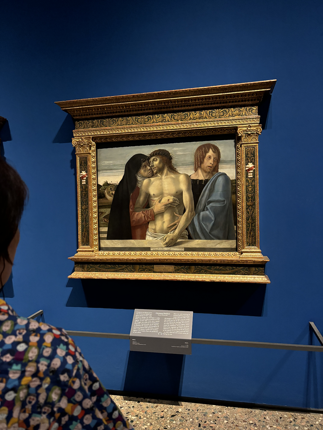 조반니의 피에타에는 예수님을 중앙에 배치하고 예수님의 상체를 중심으로 십자가의 흔적들을 드러내고 있습니다. 그리고 마리아의 표정과 차마 예수님을 보지 못하는 요한의 돌린 얼굴과 그 얼굴에 표현되는 허망함 같은 감정의 자세한 표정이 인상적인 작품입니다. 하지만 이 작품이 또 다르게 의미 있는 것은 마리아나 요한 뒤로 보이는 풍경이라 할 수 있습니다. 저 멀리 보이는 예수살렘성과 회색빛 하늘이 슬픔과 사실감을 더 하고 있습니다.