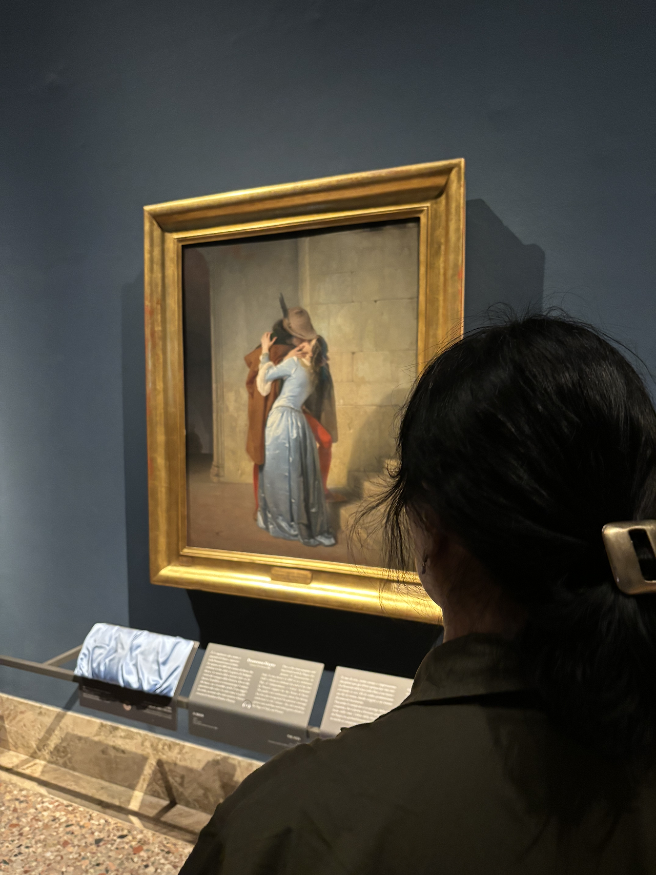 그 외에도 라파엘로의 중요한 작품들도 있지만 거의 마지막에 보게 된 프란체스코 하예즈의 작품이 바로 '키스'입니다. 클림트의 키스 외에는 몰랐는데 이 작품이 특별히 의미 있었던 이유는 그림 안에 숨겨진 의미 때문이었습니다.