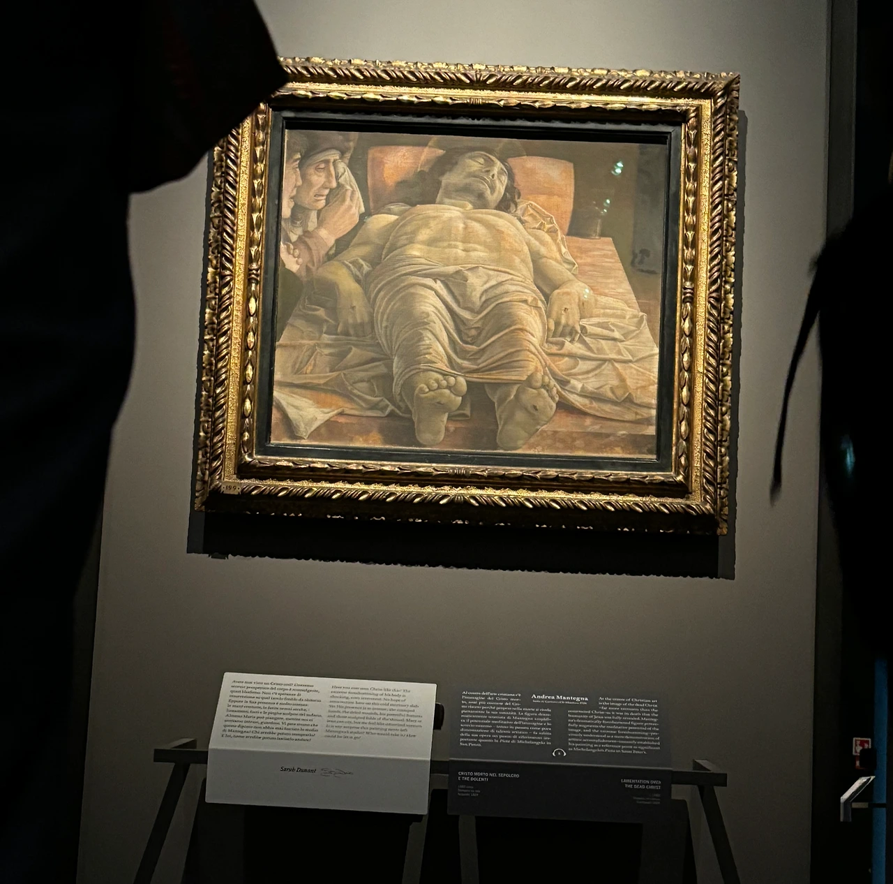 이 그림도 동일하게 피에타로 불려집니다. 왜냐하면 죽은 그리스도와 마리아가 등장하니 말입니다. 이 그림이 유명한 이유는 원근법과 단축법이 있습니다. 예수님의 시신을 성스럽게 그리기보다는 눈에 보이는 시선 그대로 그렸습니다. 그래서 실제 예수님의 시신 아래, 발끝에 서서 예수님을 보는 듯하게 비율을 맞춰 그렸습니다. 시선을 살려서 실제로 예수님의 시신 앞에 서있는 듯한, 현장에 함께 있는 듯한 착각이 들게 그림을 그렸다고 할 수 있습니다. 예수님의 죽음은 기독교에서 구원의 상징이기에 중요한 의미가 있습니다. 하나님의 아들이자 신인 예수가 인간의 몸으로 십자가형을 당해 죽음으로 죄 값을 치릅니다. 그래서 피에타는 여러 작가에 의해 그려졌고 조각으로 표현되었다 생각합니다. 그 죽음은 신의 죽음이 아닌 철저히 인간의 죽음이 되어야 한다 생각합니다. 그런 피에타 그림 중에서는 가장 인간적인 모습이자 그 현장에 예수의 죽음을 사실감 있게 느낄 수 있는 만테냐의 죽은 그리스도는 최고의 피에타라는 생각을 해보게 됩니다.