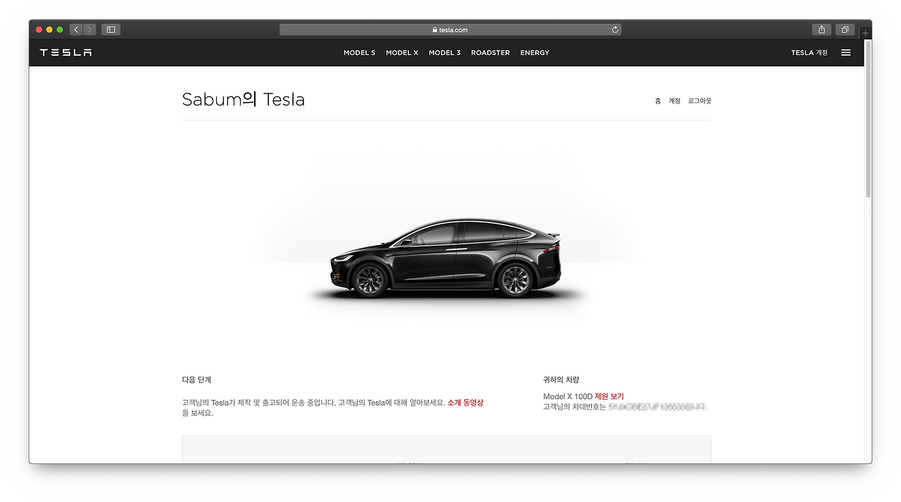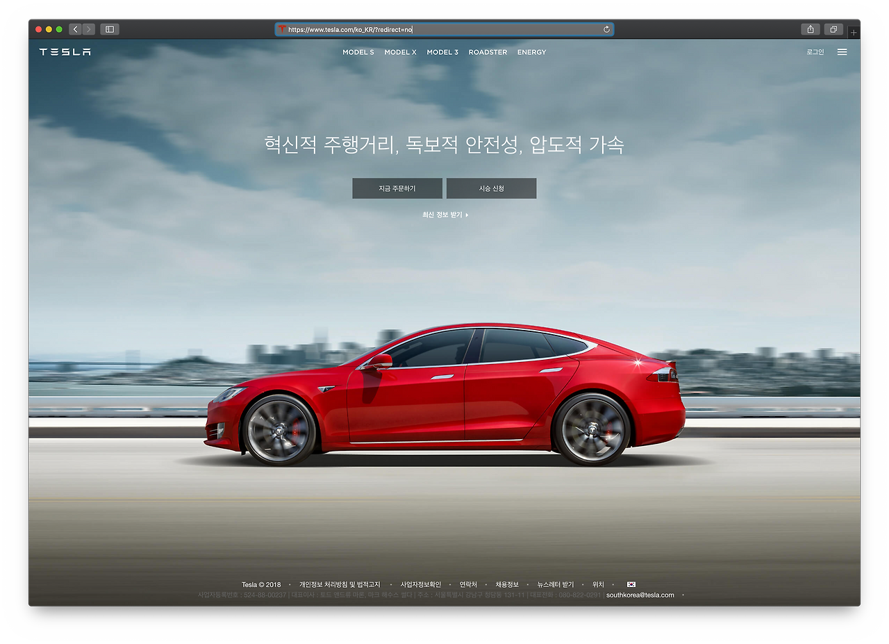 테슬라 사이트에 접속합니다. 그럼 이런 화면을 보실 수 있습니다.
