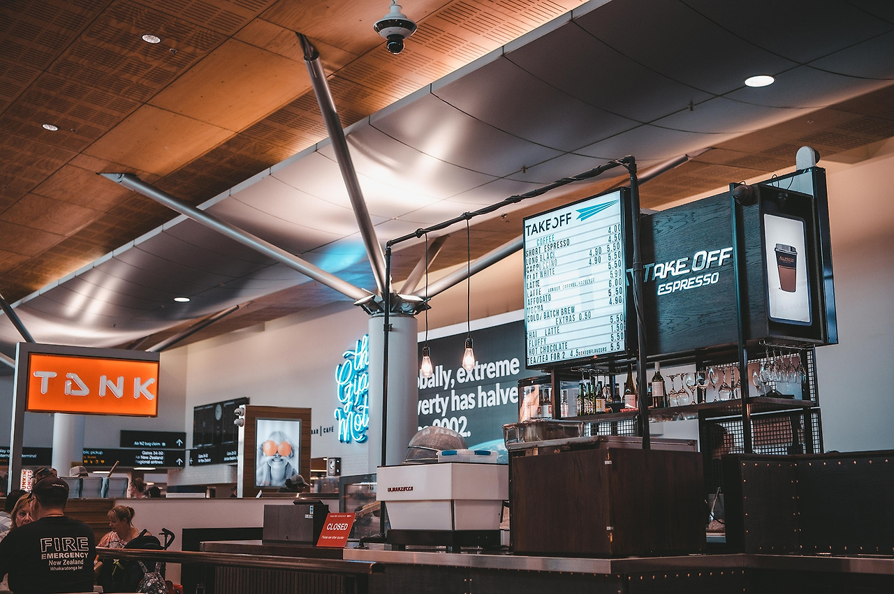 창밖에 풍경도 보고 ( 사실 10시간 이상은 뭐가 안보임 ) 거의 도착해서 신비로운 광경이 눈앞에 펼쳐졌다. 이때부터 우와우와를 달고 살았던 것 같다. 그냥 뭐가 없는데 그냥 멋있고 편안하고 안정되고 좋고 뭐 그런 느낌이랄까? 이 놈의 나라는 왜 이리 깨끗해라고 욕도 하고... 사실 오크랜드는 환승을 위해 들렸던 공항이라 뭐 딱히 한 게 없다. 비행기 안에서 바라본 풍경이 전부였고, 나는 커피가 너무 먹고 싶었을 뿐. 여행 내내 마셨던 플랫화이트. 난 커피맛을 잘 모르지만 그냥 마시는데 맛있었다.