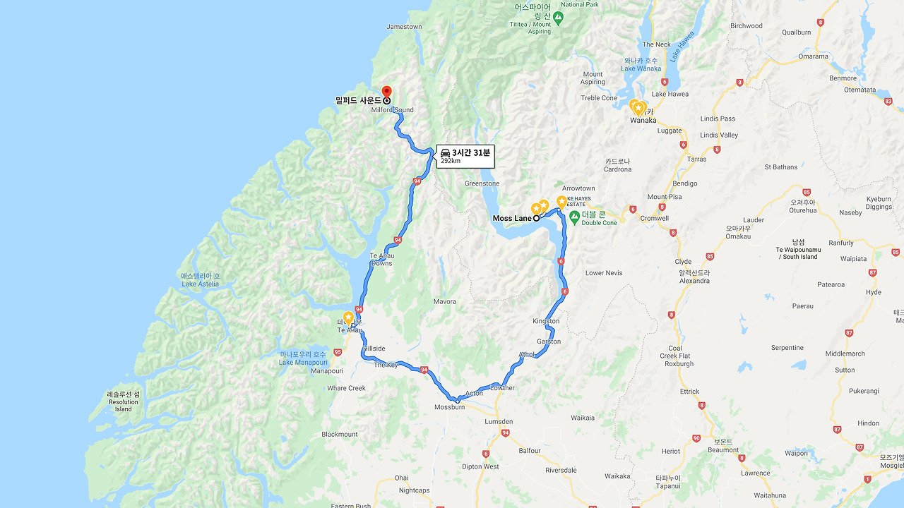 퀸즈타운 숙소에서 밀퍼드사운드까지의 총거리는 293km 였고 길이 좀 험해서 약 3시간에서 4시간 사이정도를 잡고 간다고 한다. 랜트한 차량을 번갈아서 운전하기로 하고 난 보조석에서 잘려고 했지만!!!!!! 밀퍼드사운드가는길이 너무 멋있어서 계속 사진찍고 동영상 찍고 동구랑 함께 '우와' '우와' '우와'를 계속 연발했다. 뭐 그리고 사실 좀 자긴했지만... 헤헤