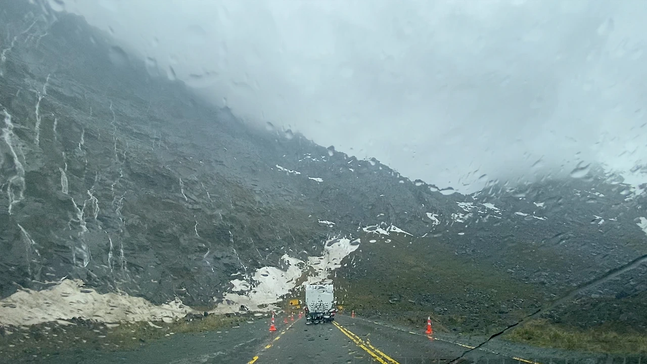 그리고 출발해서 달리는 도중 또 무지개가 나오고 흐리다 맑다를 반복하는 날씨. 운전이 이렇게 즐거울 수 있구나를 알게해준 나라가 뉴질랜드 인것같다. ( 참고로 난 운전하는걸 별로 좋아하지 않는다 ) 하루에 이렇게 많은 무지개를 볼 수 있을까라는 생각이 들정도로 무지개도 많이 봤다. 그리고 지대가 높아지면서 눈이 보인다...? 날씨가 춥고 안개가 낀 산속 풍경은 너무 멋있어서 잠시 멈췄다. 장은 공터에 옹기종기 휴식을 취하는 차량들이 있었고 계곡물이 너무 맑아서 실제로 보틀에 물을 담아서 마시는분들도 있었다. 너무 깨끗. 웅장하고 멋있는 장소였다.