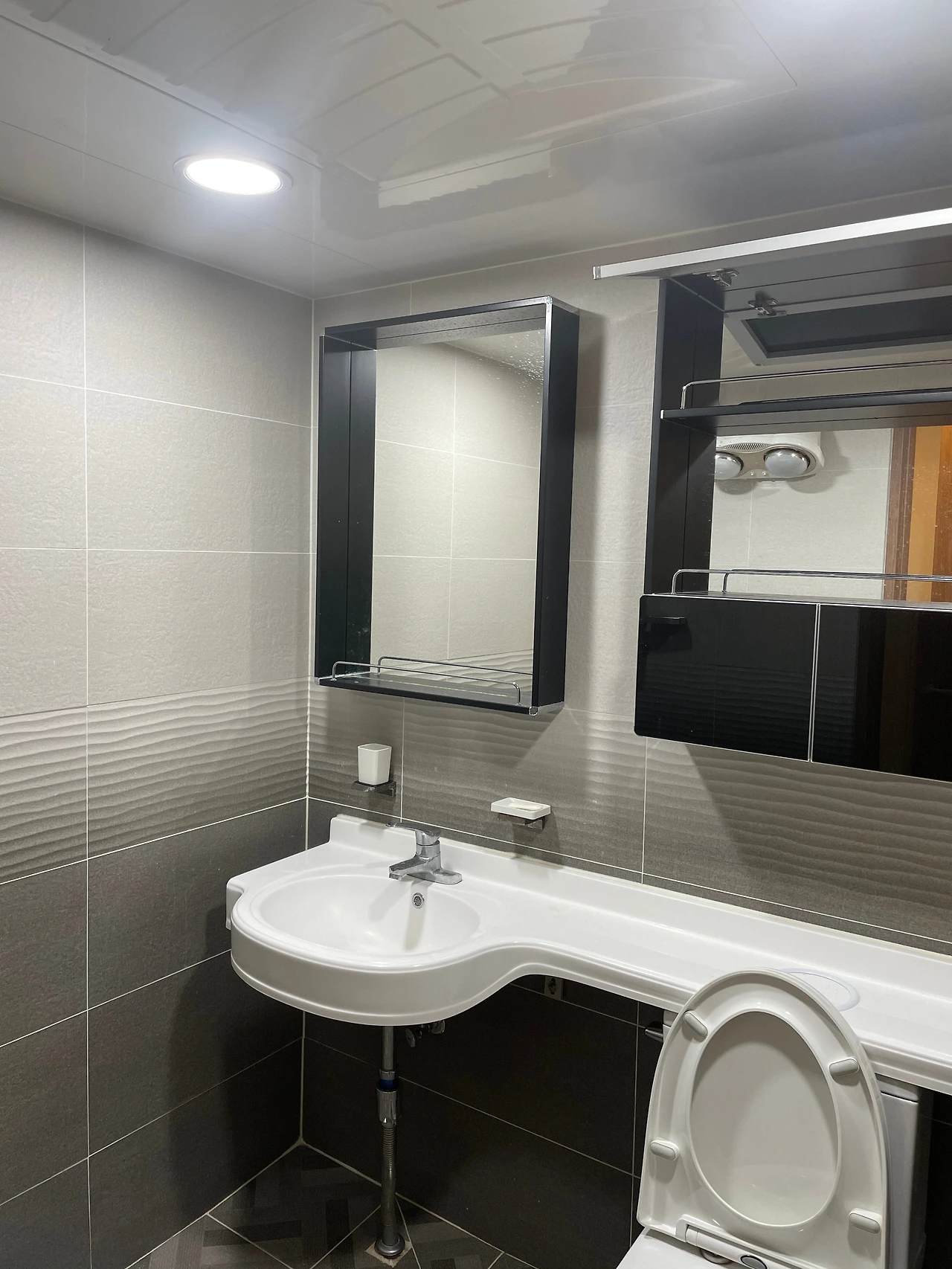 어머니가 사용하는 공간은 방 2 화장실 1개 파우더룸이 연결된 구조이다. 미닫이 문으로 경계를 두고 방과 방 사이에 파우더룸과 화장실이 있는 구조이다. 어머니가 단독으로 생활하기에 편리한 구조로 인테리어를 진행했다. 작은방은 어머니가 유튜브를 보거나 공부를 할 수 있는 공간으로 구성했다. 그리고 어머니가 쓰는 공간의 타일은 거실보다 좀 더 고급스러운 타일을 사용했다. 처음 생각했던 것과 결과물이 일치하여 기분이 좋다. 그리고 어머니가 잘 사용하고 계셔서 더욱 기분이 좋다.