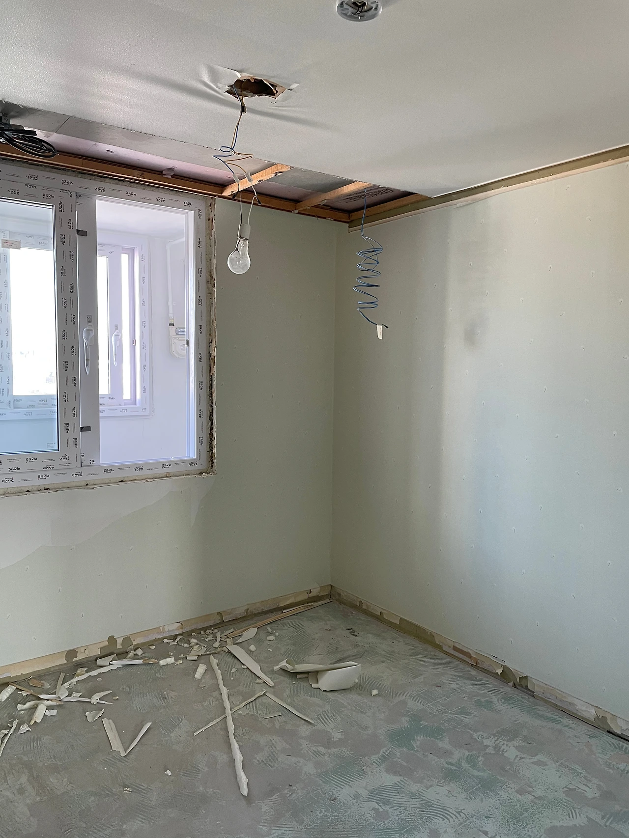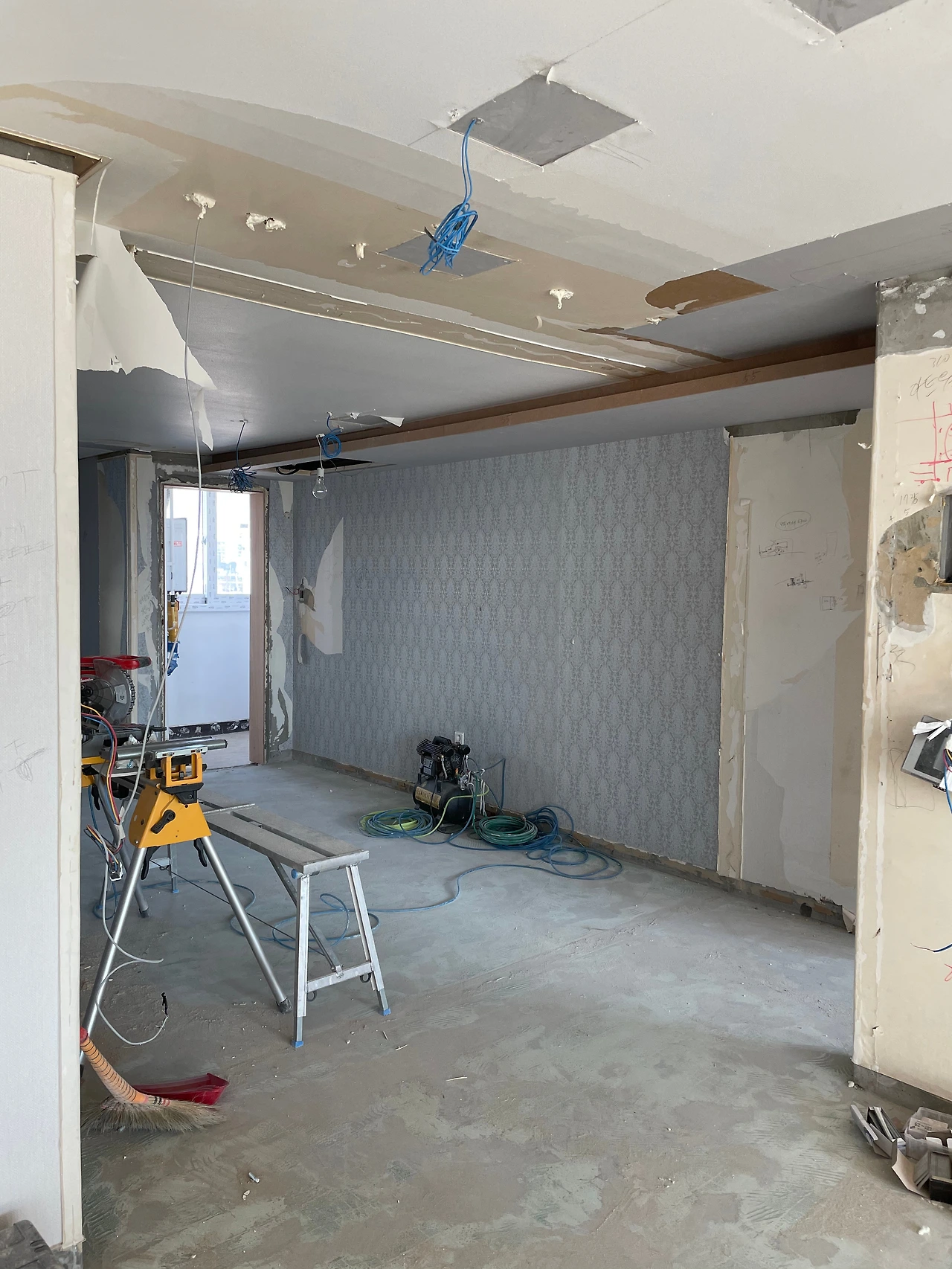 도면이 나오고 바닥재 변기 도배지 타일 수전 가전 조명 스위치 등등 등등을 고르고 철거부터 진행이 되었다. 현장은 딱 2번 정도 다녀왔는데 아래 사진은 철거하고 진행 중일 때 찍은 사진이다.