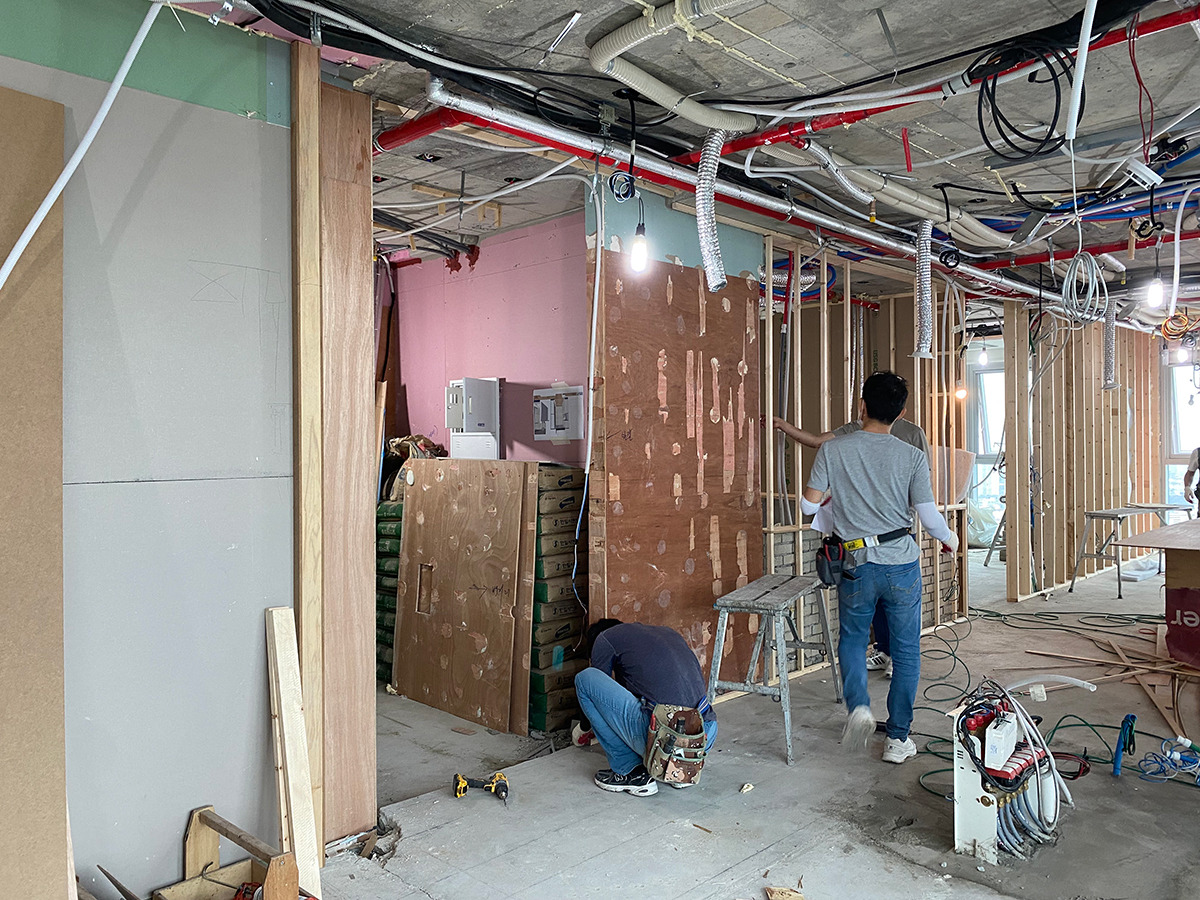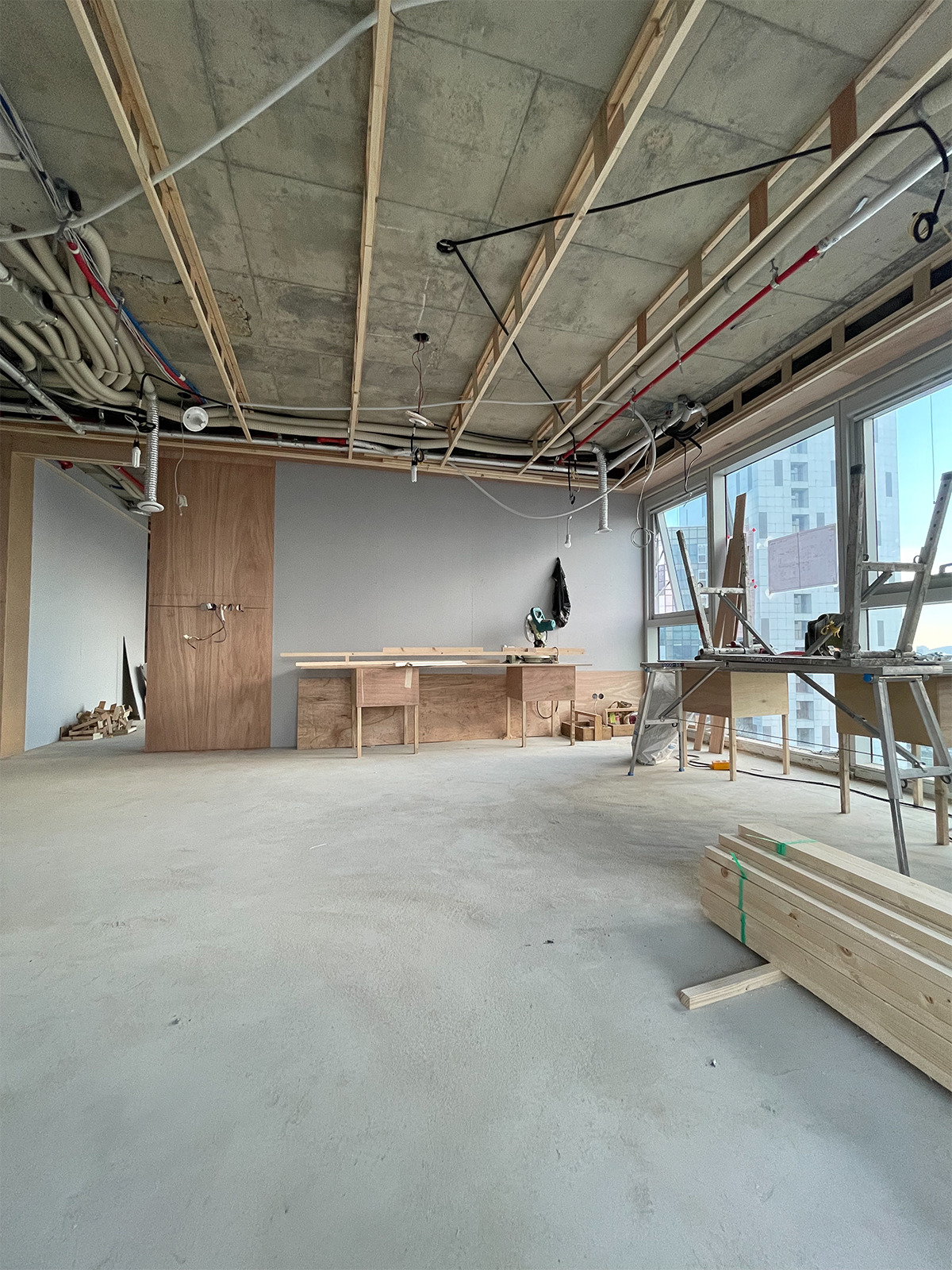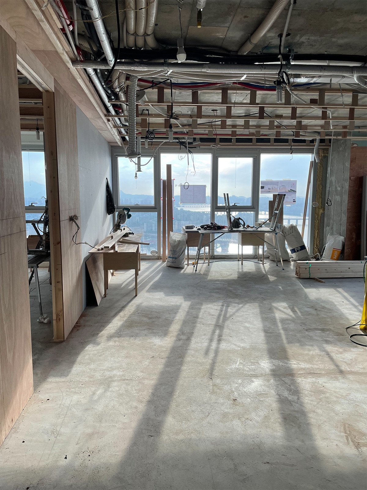 인테리어를 하면서 몇 가지 강조드렸던 것은 그리드, 간격이었다. 예를 들어 천정의 조명 그리드 및 스위치와 보일러 컨트롤러의 간격이라고 할 수 있겠다. 하지만 천장은 소방 관련 그리고 통풍 관련 때문에 조명 그리드를 아무리 잘 맞춰도 깨질 수밖에 없었다. 스위치나 천정조명은 작은 부분이라고 할 수 있겠지만 어정쩡한 간격 그리고 어긋난 그리드로 구성되어 있다면 영원히 고통받을 수 있다는 것이 나의 생각이다. 작다고 무시하는 경향이 있지만 개인적으로는 굉장히 중요한 요소라고 생각한다.