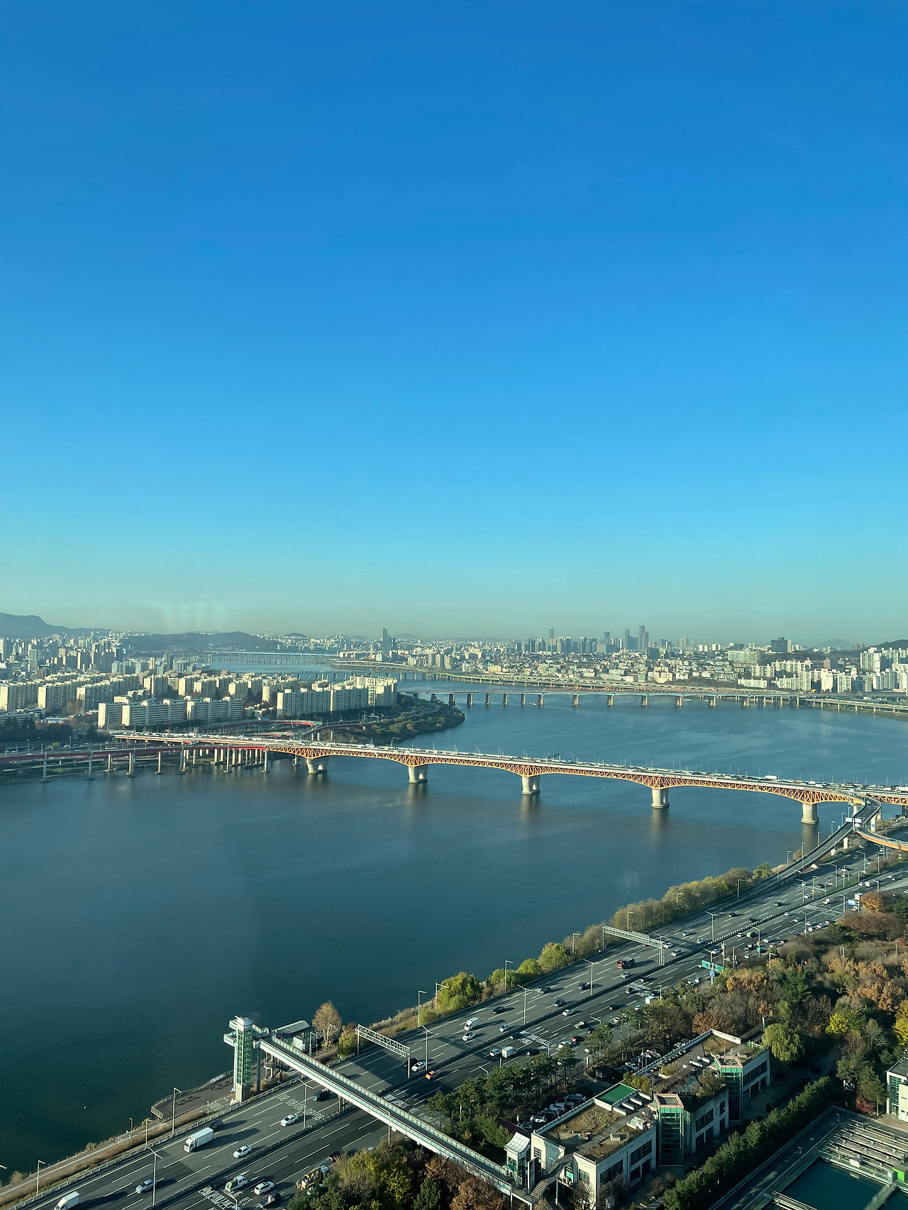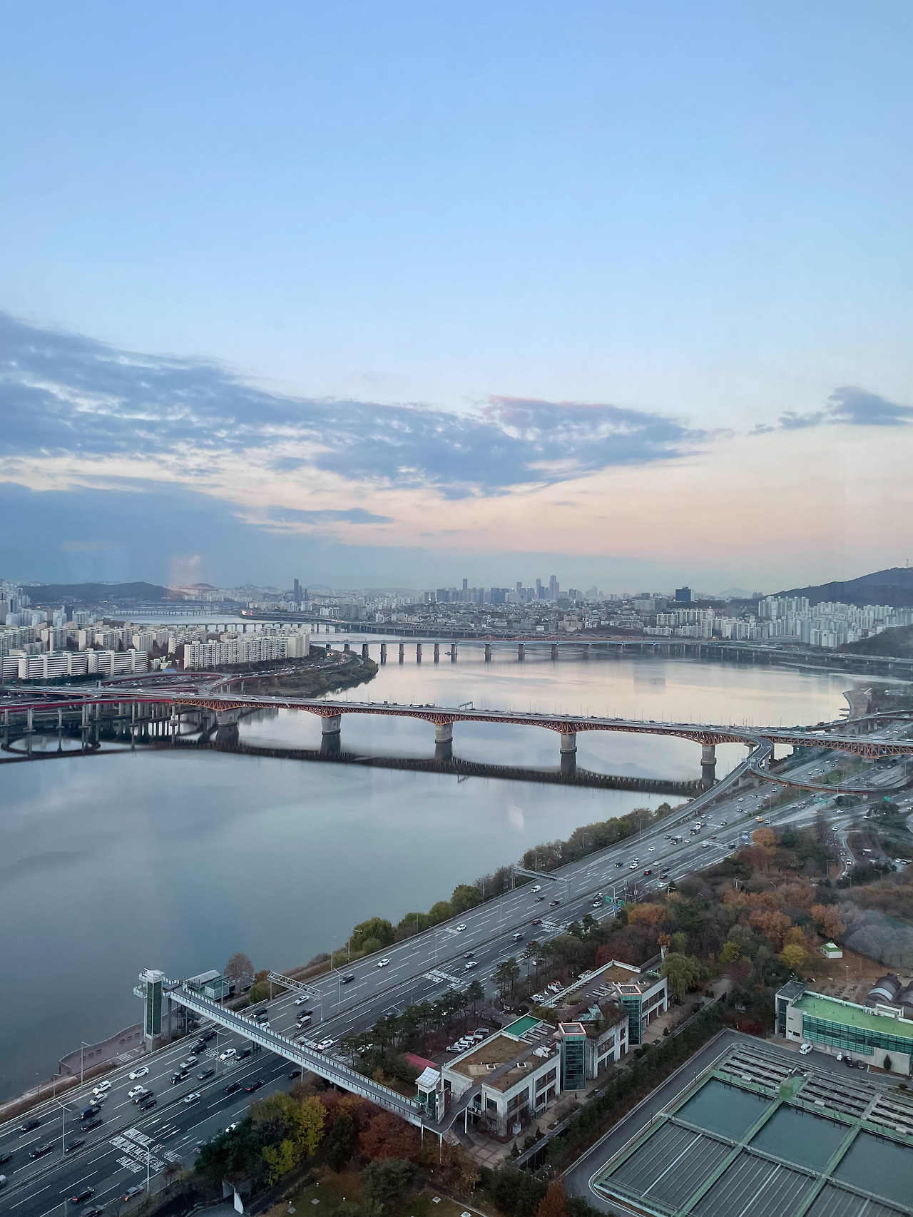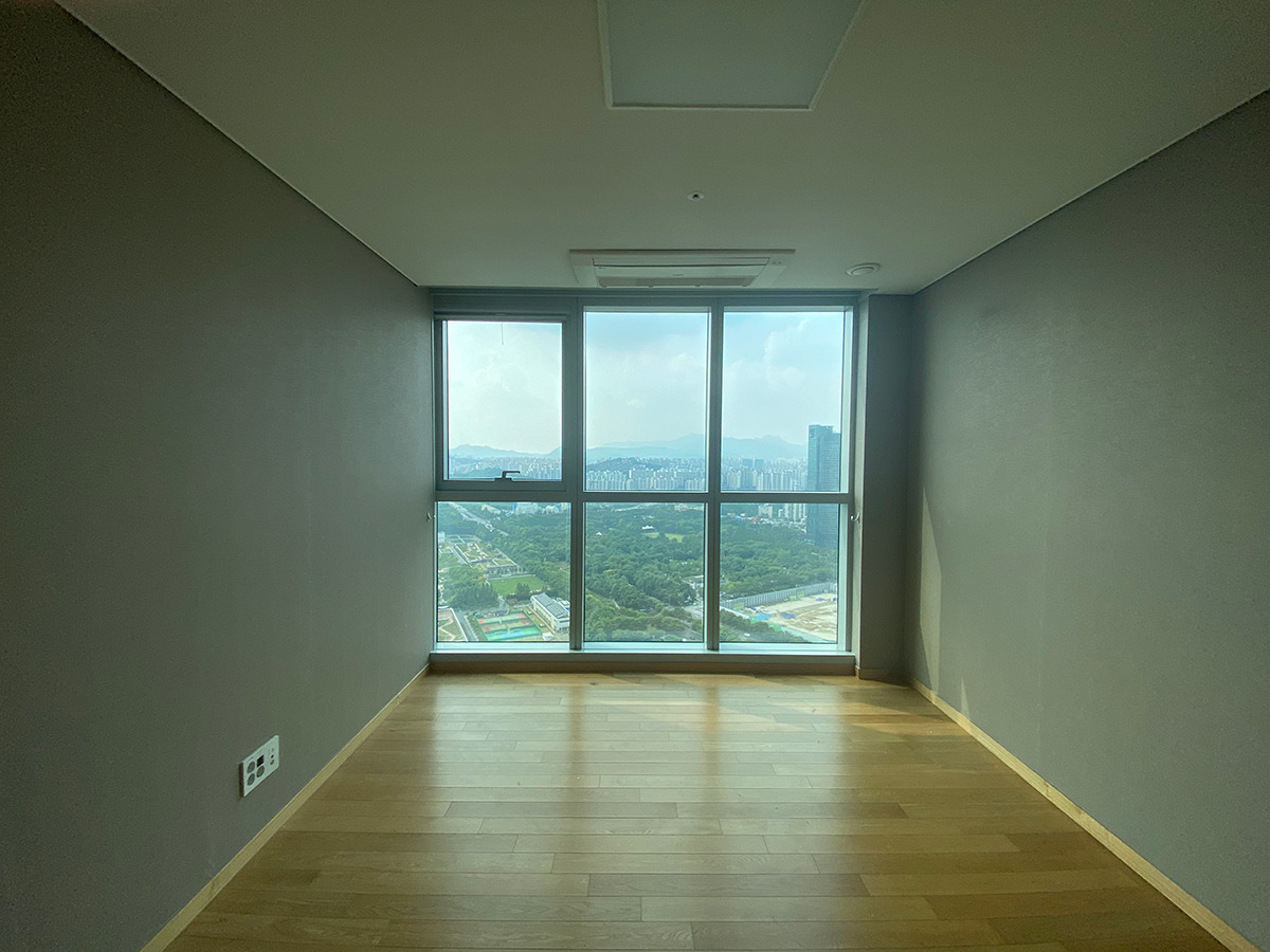 거실의 TV 위치 때문에 정말 많은 고민을 했다. 아파트 구조상 TV 위치는 큰 벽 쪽에 위치시키는 구조이긴 했지만 동쪽 방향으로 TV를 두면 앉아서 보는 뷰가 좋지 못하기 때문에 반대편이 서쪽 방향 기둥에 TV를 위치시키고 싶었다. 그러나 벽의 길이가 짧아서 큰 TV를 두면 돌출(?) 뒤는 부분이 있어서 파티션을 설치해야 하는 상황이었다. 하지만 파티션을 설치하면 그만큼의 뷰 손실(?)이 있기 때문에 정말 어떻게 하면 좋을지에 대한 고민을 많이 했던 것 같다. 인테리어 디자이너 분과 많은 고민을 하고 결론을 내린 것은 유리 파티션이었다. 공간의 분리도 하고 벽의 기능 그리고 시야를 가리지 않는 탁월한 선택이었던 것 같다. 물론 TV는 거거 익선! ( 디자이너님 감사합니다! )