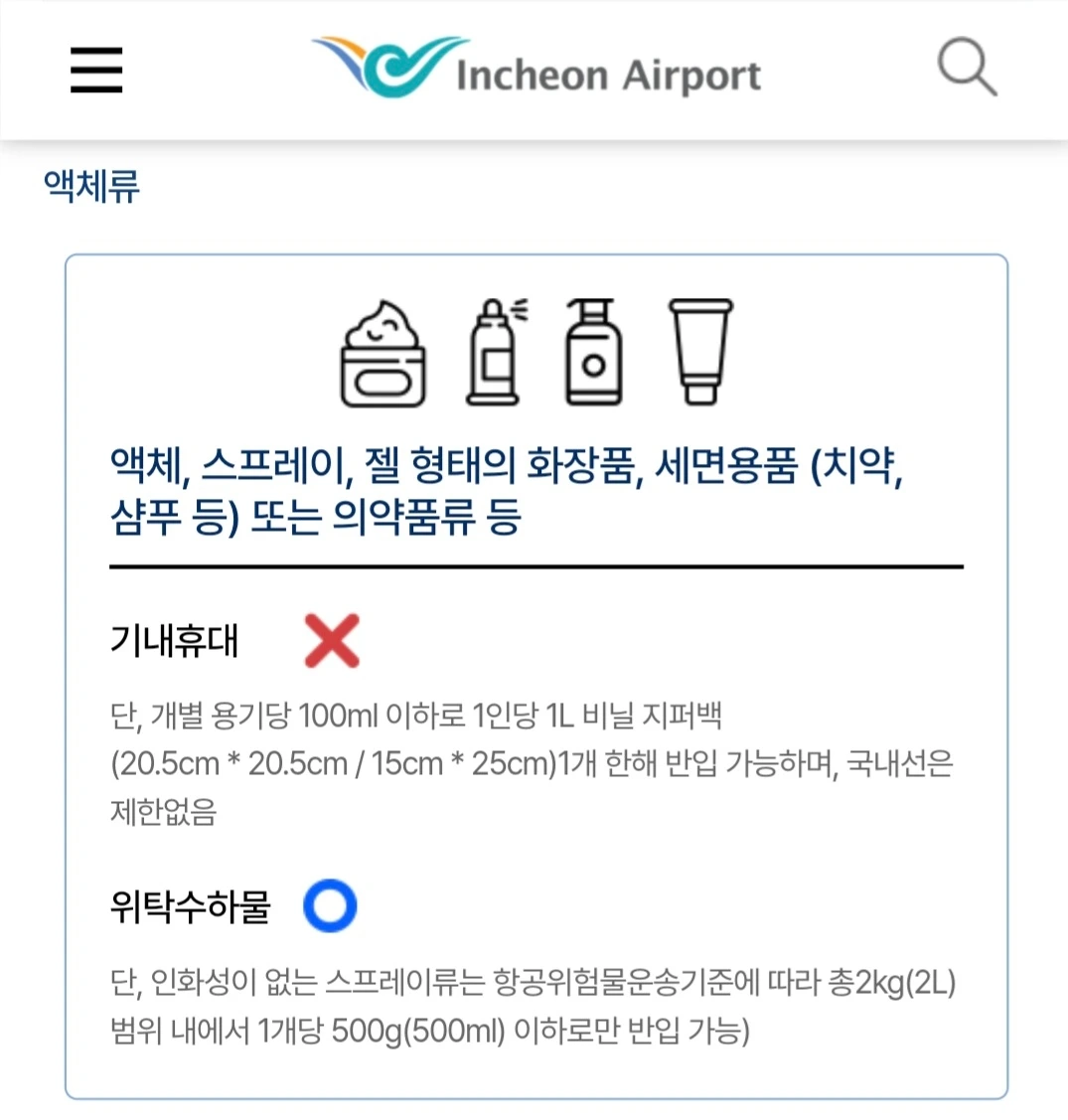"위탁 수하물 부치실래요? 아니면 100ml 용기에 소분해 오실래요?" 공항 직원 분 물음에,