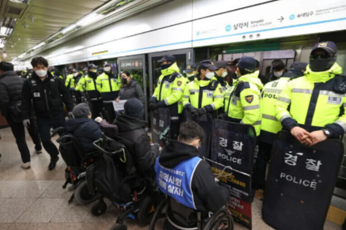 너희도 알지? 발뒤꿈치부터 시작해 앞꿈치가 닿았다 떨어지면서 회사와 학교로 이동하는 사람들을. 그들과 같은 방식으로 걸어온 나 역시 지하철 선로 앞에 서 있어. 나처럼 지하철을 타려는 것뿐인데, 무시무시한 공권력의 위협을 받는 휠체어 장애인들도 옆에 있지. 바퀴 모양인 그들의 발은 너희와 다르게 생겼지만, 사실은 똑같아. 똑같은 발이야.