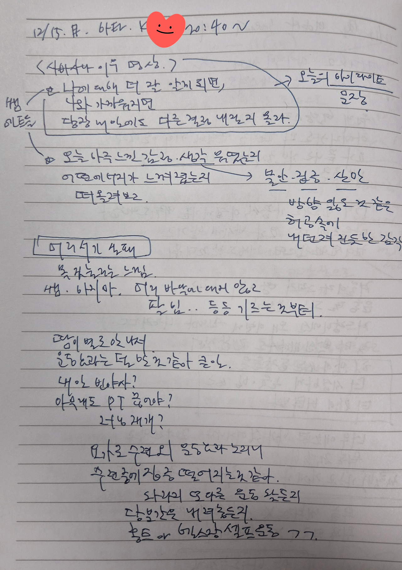 땀이 별로 안 나서 운동 효과는 덜한 것 같아 큰일. 내일 빈야사? 아무래도 헬스 PT 끊어야? 러닝 재개? 요가로 수련 외 운동효과 노리니 수련 중에 집중 떨어지는 것 같아. 차라리 또 다른 운동 찾든지 당분간은 내려놓든지. 홈트나 헬스장 셀프 운동 고고.