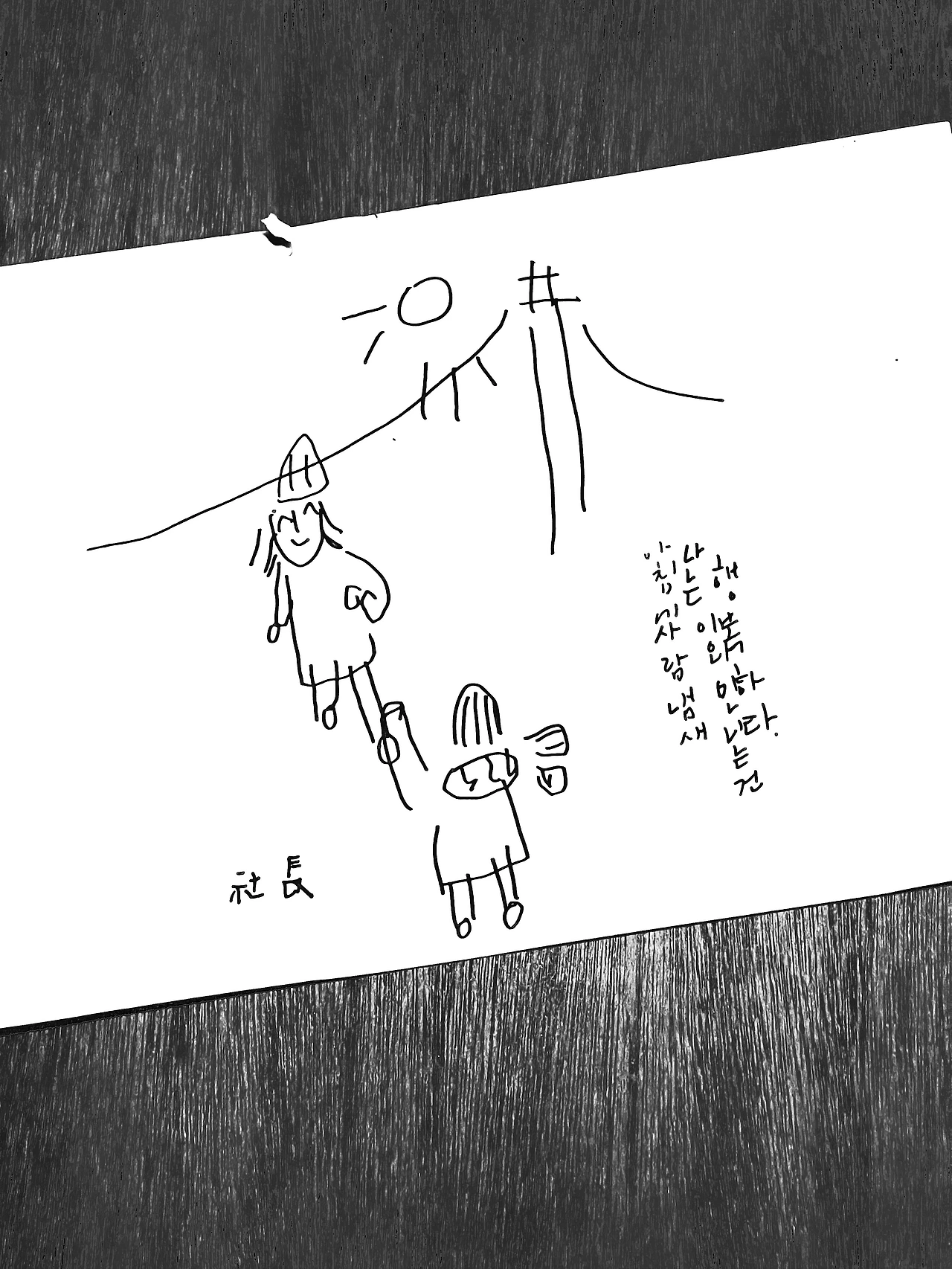 '사장님은 사물을 보지 않으면서 그림을 그리는 것 같아'